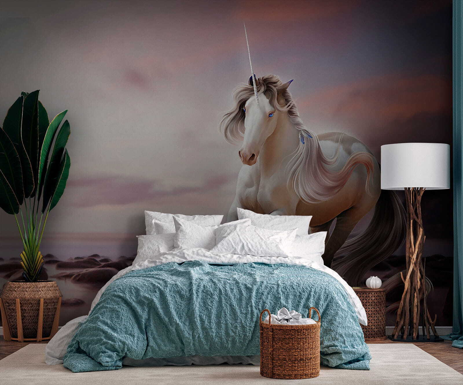 Képzelje el, hogy minden alkalommal, amikor belép a szobájába, egy varázslatos világba lép. Ez a “Mystical Unicorn in Serene Sunset” falfestmény pontosan ezt teszi. Tökéletes mindenkinek, aki valaha is arról álmodott, hogy egy unikornis legyen a legjobb barátja, olyan, mintha egy darab fantáziaországot tartana otthonában. A lágy alkonyati árnyalatok és a nyugodt tengerpart egy tengerparti este nyugalmát idézi, de egy csipetnyi varázslattal – mert kinek nincs szüksége egy kis varázslatra az életében? Különösen jól illik gyerekszobákba vagy egy olvasósarok szeszélyes hangulatú díszeként. Képzeld el: feküdj az ágyadon, bámuld ezt az álomszép egyszarvút, és érezd magad egy olyan helyre szállítva, ahol minden lehetséges – ez a falfestmény pontosan ezt teszi. Miért ne adna tehát egy kis tündérport a dekorációjához, és tegye minden napját egy kicsit varázslatosabbá?