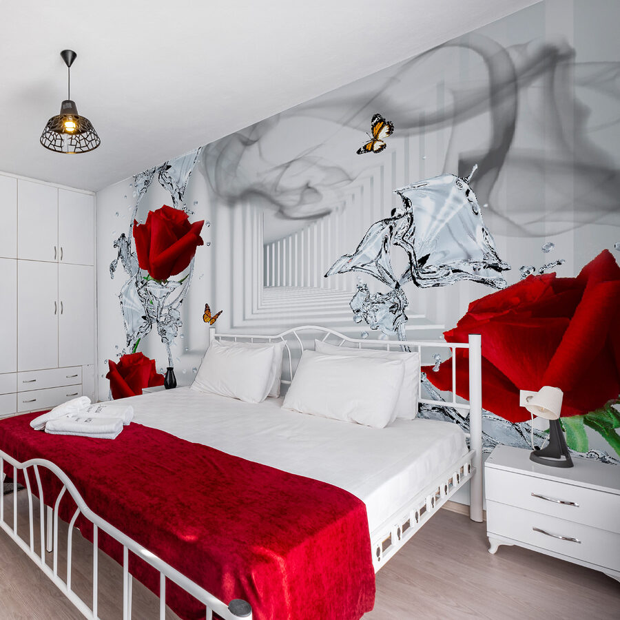Fotótapéta Vörös rózsák lebegő pillangókkal termékről 1 értékelés