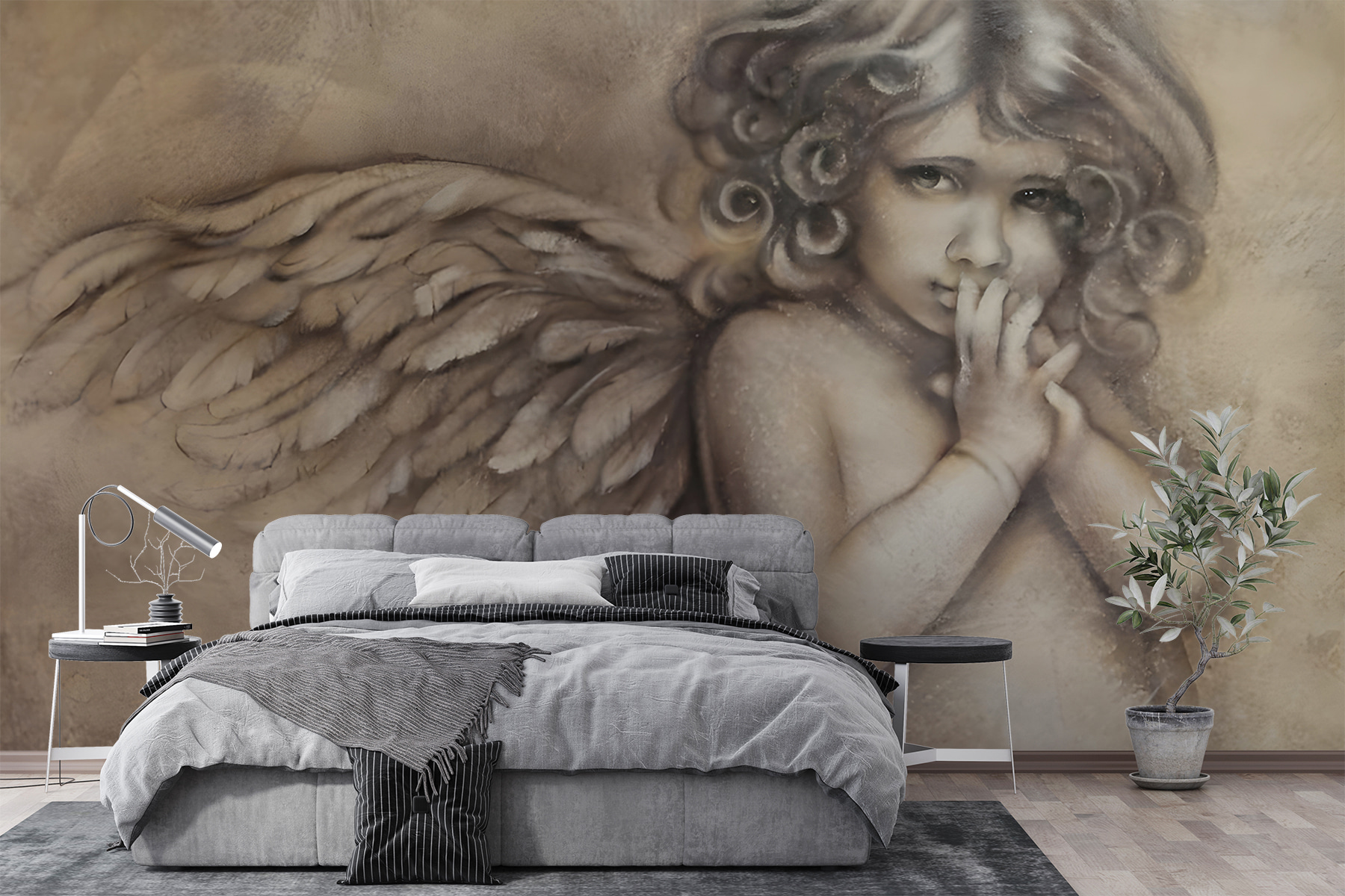 Szeretett volna egy kis szeszélyt a falakra? Ismerje meg a “Pensive Angel with Soft Wings” (Elgondolkodó angyal lágy szárnyakkal) falfestményt. Olyan, mint egy szeles délután szelíd sóhaja, művészetben megörökítve. Ez az angyal, aki mély gondolatokon gondolkodik azokkal a gyönyörűen finom szárnyakkal, melegséget és harmóniát varázsol bármelyik szobába.