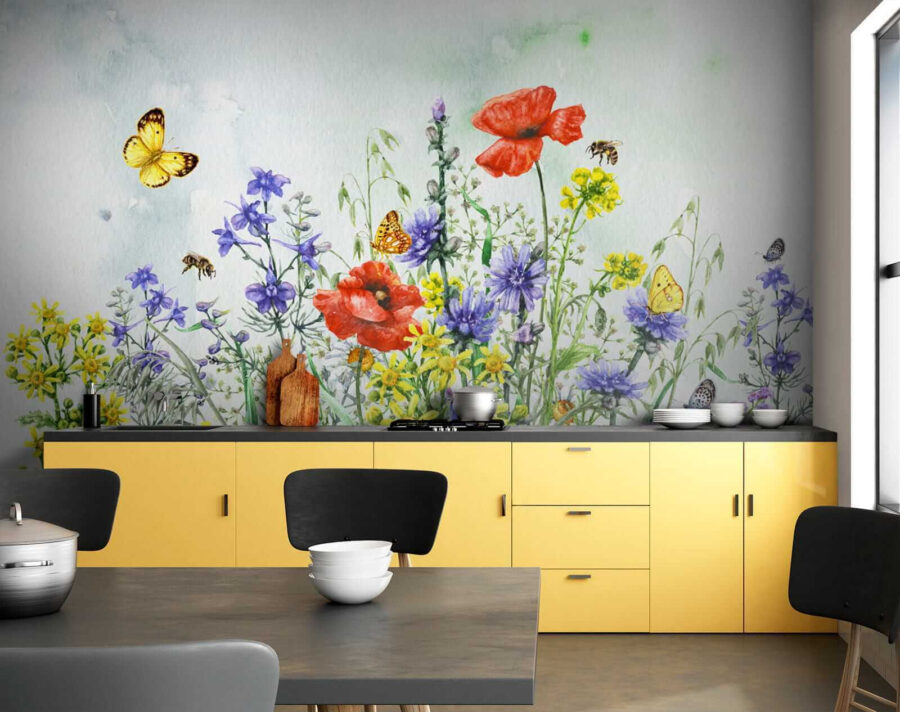 Ez a falfestmény nem csupán dekoráció; átalakítja a tér egész hangulatát. Gondoljon a lusta vasárnap reggelekre egy kávéval a kezében, elmerülve a színes virágokban és a játékos pillangókban – tiszta boldogság. Az akvarell bájával tökéletes bármely olyan helyiségbe, ahol szükség van a természet varázsának egy csipetnyi varázslatára. Lehet, hogy minden egyes pillantással azon kapja magát, hogy egy réten álmodik. Adjon a falaknak mesélni valót. 🌸🦋