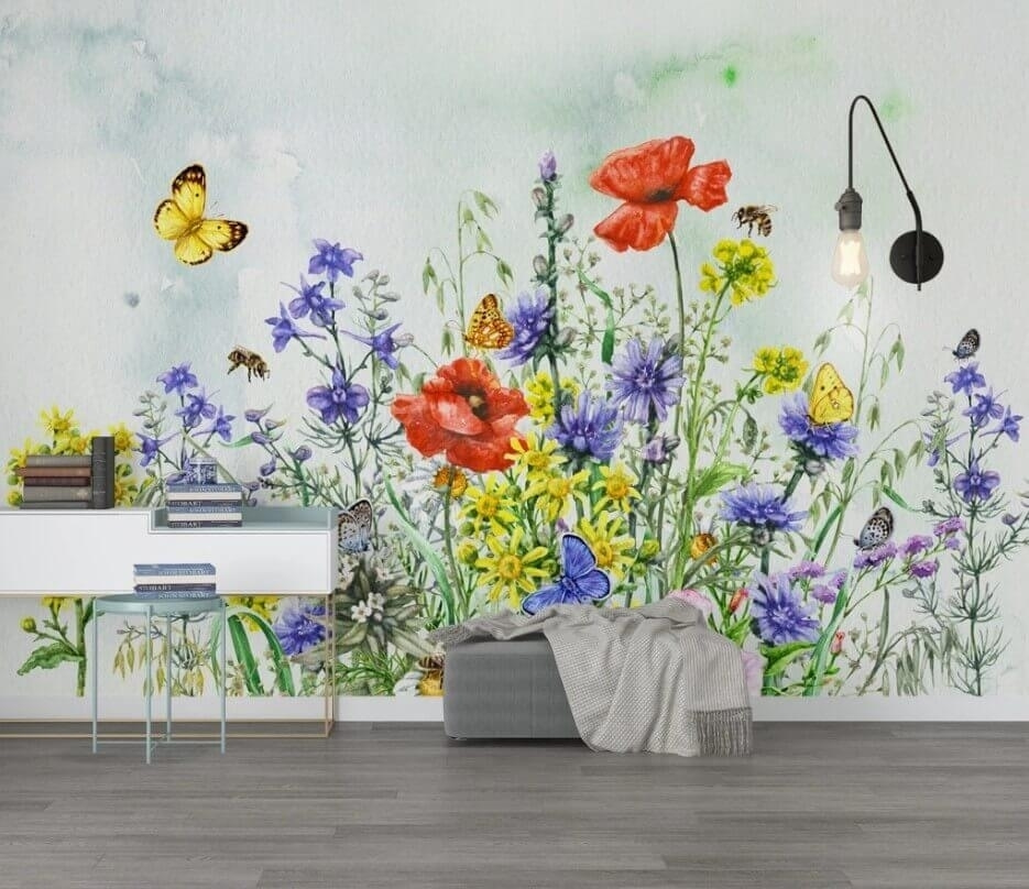 Képzeld el ezt – a szobádat egy tavaszi kert vidám hangulata tölti be, közvetlenül a faladon! Ezt hozza el a “Falfestmények élénk virágokkal és rebbenő pillangókkal”. Ez a falfestmény könnyedén ötvözi a vadvirágok buja szépségét a levegőben táncoló kecses pillangókkal. Olyan, mintha egy tökéletes napsütéses napot örökítene meg!