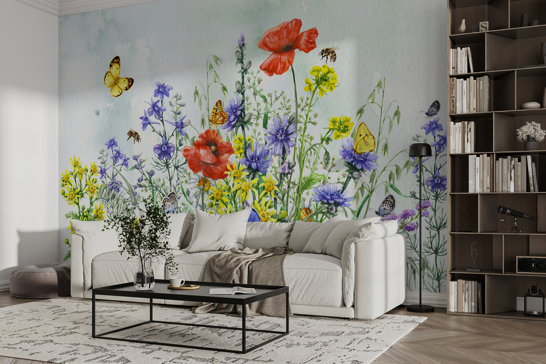 Ez a falfestmény nem csupán dekoráció; átalakítja a tér egész hangulatát. Gondoljon a lusta vasárnap reggelekre egy kávéval a kezében, elmerülve a színes virágokban és a játékos pillangókban – tiszta boldogság. Az akvarell bájával tökéletes bármely olyan helyiségbe, ahol szükség van a természet varázsának egy csipetnyi varázslatára. Lehet, hogy minden egyes pillantással azon kapja magát, hogy egy réten álmodik. Adjon a falaknak mesélni valót. 🌸🦋