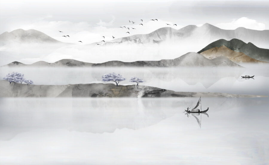 Itt egy falfestmény, amitől úgy érzi majd magát, mintha egy nyugodt álomországban lebegne. Képzelje el, ahogy a reggeli kávéját szürcsölgetve ezt a megnyugtató jelenetet nézi, amely egy tükörsima tavon sodródó, ködös hegyekkel körülvett magányos csónakot ábrázol. Ah, a nyugalom… Talán el is felejti, hogy a nappalijában van! Van ez a varázslatos, zen hangulat, ami magával ragad – mintha a hegyek és a csónak a titkaikat akarnák megsúgni neked. Tökéletes azok számára, akik egy kis csendre vagy művészi inspirációra vágynak. Szinte érezni lehet a fák lágy susogását vagy a víz lágy fodrozódását… Lélegezzen be, lazítson, talán még el is merülhet gondolataiba. Ki tudja? Hirtelen az otthona nem csak egy otthon lesz – hanem egy békés menedékhely.
