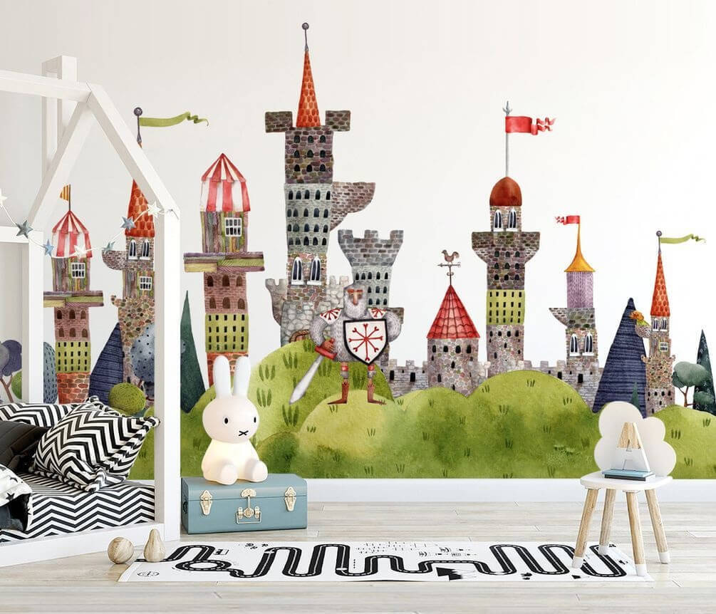 Képzeld el, ahogy a kisgyermeked minden reggel a saját középkori királyságában ébred! Egy bátor lovag, karddal a kezében, aki a vár tornyai felett őrködik; olyan, mintha egy őrzője lenne az álmaiknak. És azok a tornyok… nézd meg azokat a furcsa, színes tetőket! Mintha egyenesen egy meséből pattantak volna ki.