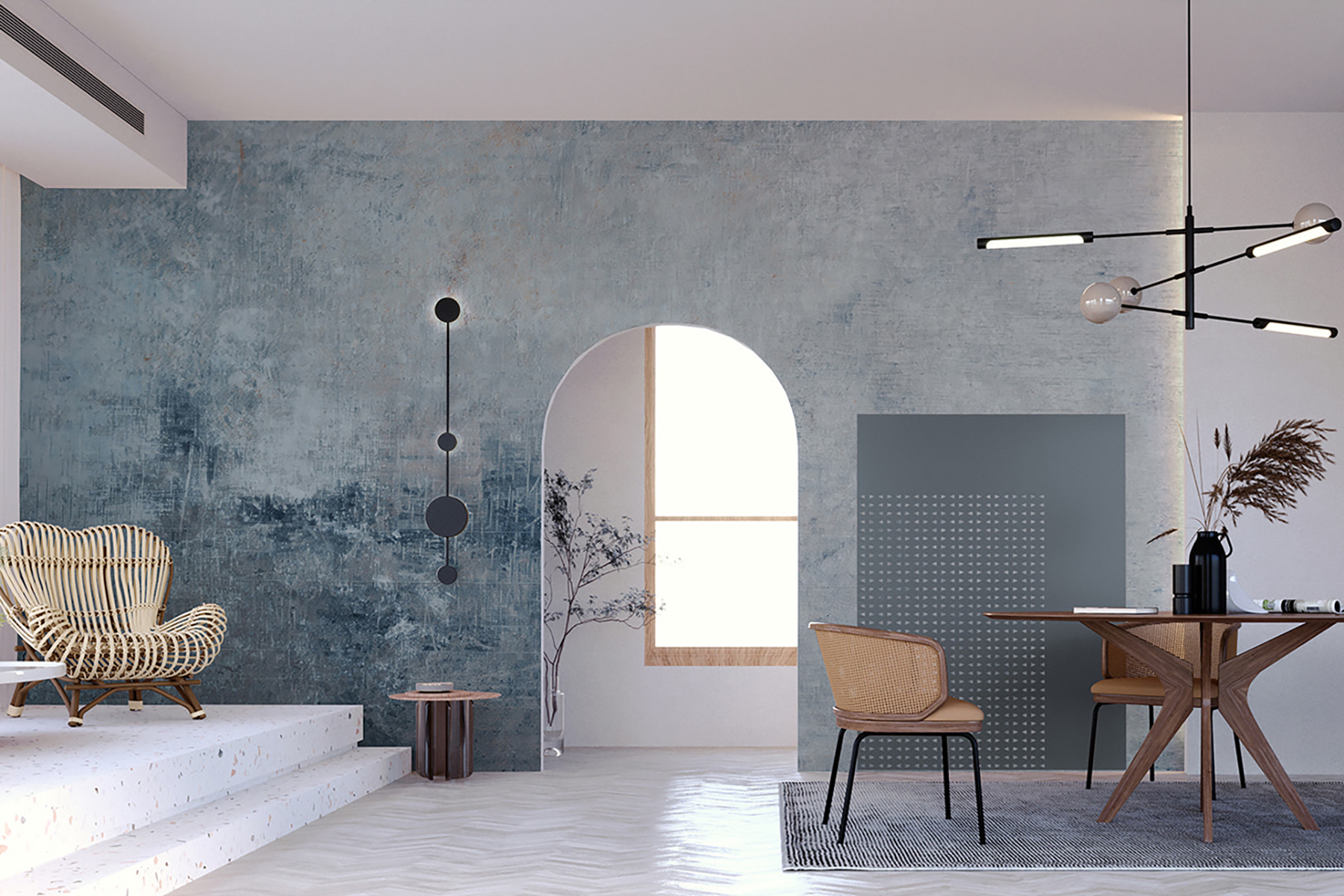Alakítson át bármilyen helyiséget ezzel a hűvös kék falfestménnyel, amely eleganciát és hűvös hangulatot sugároz. Képzelje el, hogy egy olyan térbe lép be, amely olyan, mint egy nyugodt reggel a tengerparton – a kék lágy árnyalatai egymásba olvadnak, és laza, szellős hangulatot árasztanak. Tökéletes arra, hogy egy unalmas falat lenyűgöző fókuszponttá alakítson, vagy esetleg csak hátteret adjon azoknak a képeknek, amelyeket idén nyáron tervez. Egyedi, szinte időjárásfüggő megjelenésével melegséget és kifinomultságot kölcsönöz anélkül, hogy egy szót is szólna. Szóval fogjon egy csésze kávét, dőljön hátra, és hagyja, hogy a falak beszéljenek! Ki gondolta volna, hogy a lakberendezés ilyen egyszerű és hívogató lehet?