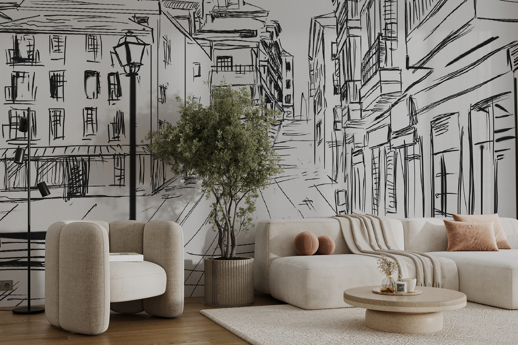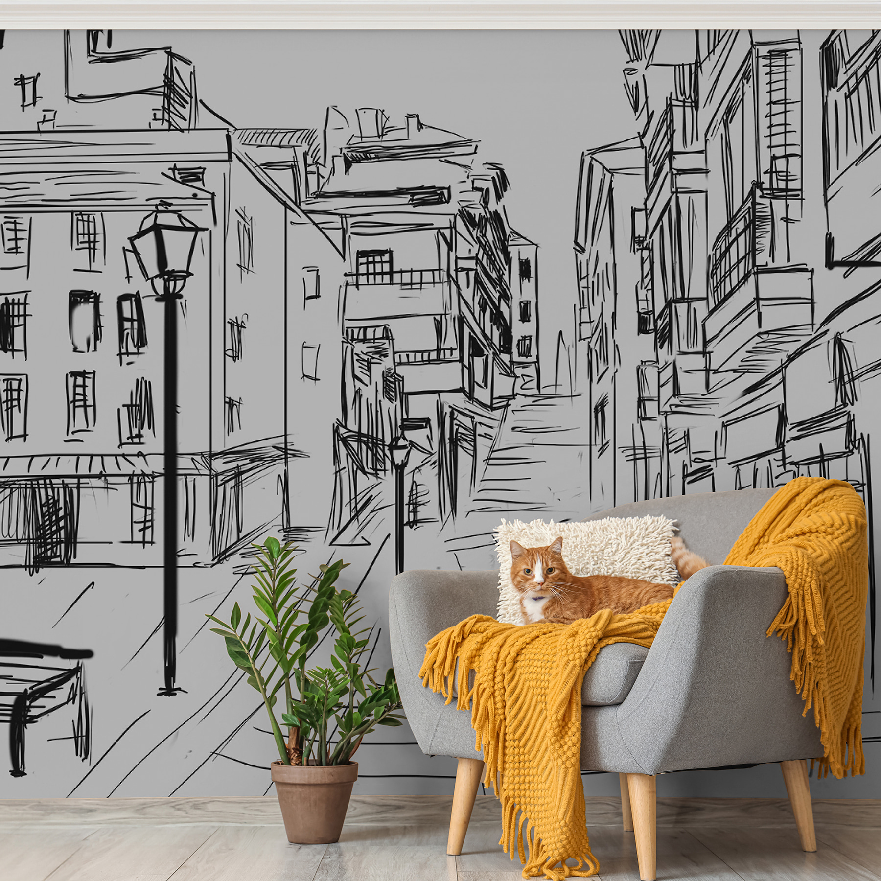 Képzelje el, hogy a nappalijában üldögél, miközben ez a lenyűgöző fekete-fehér falfestmény van a falán. Olyan, mint egy életre kelt szeszélyes vázlat! A városi jelenetet megörökítő játékos vonalak – egy magányos paddal és tornyosuló épületekkel – olyan művészi hangulatot kölcsönöznek, hogy az európai utcákról fogsz álmodozni.