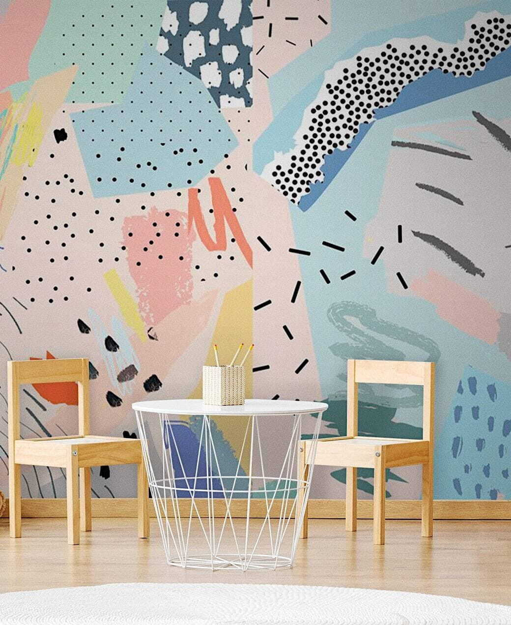 Van egy gyerekszobád, aminek szüksége van egy kis varázslatra? Nézd meg ezt a színes absztrakt falfestményt – olyan, mint egy játékos patchwork paplan a falakon. Lágy pasztellszíneket találsz, merészebb darabokkal vegyítve; a kis színpompás és furcsa formák egyszerűen álomszépek. Képzeld el, hogy a kisgyermeked fantáziája megvadul, ha ennyi vidám mintát nézegethetsz! Olyan, mintha egy mesekönyv robbant volna a falra – a lehető legjobb értelemben.