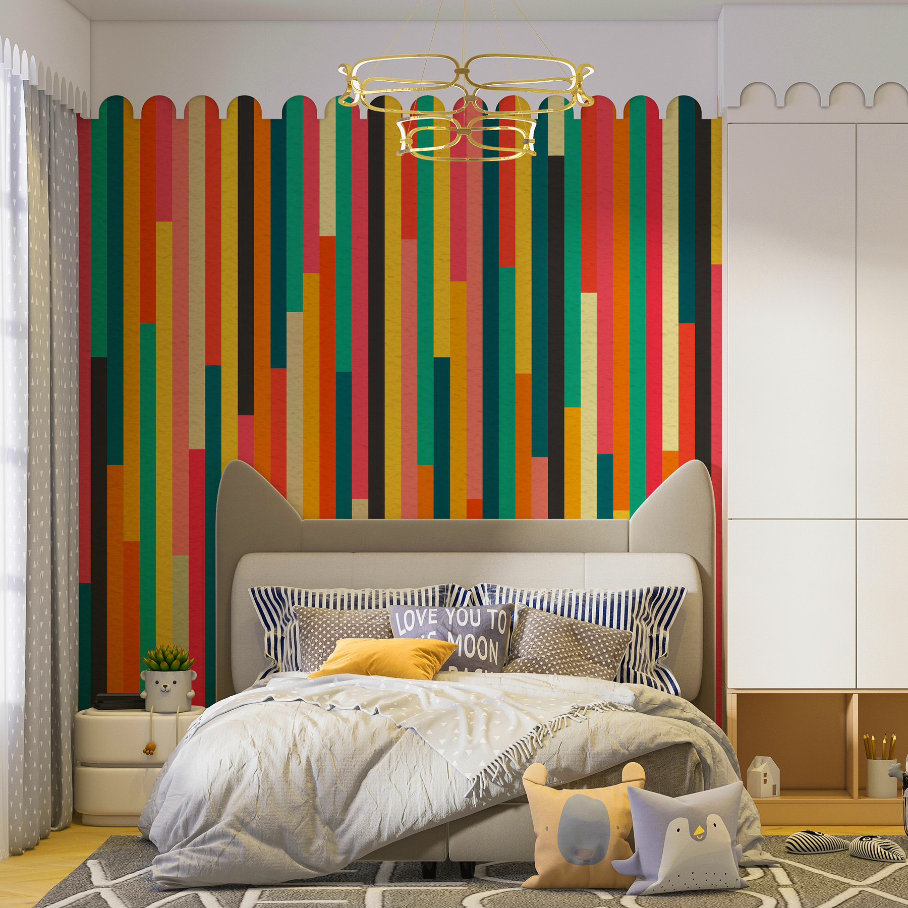 Dobja fel a falakat ezzel az élénk csíkos falfestménnyel. Képzeld el, hogy egy olyan szobába lépsz be, amely olyan, mint egy buli – élénk színek fogadnak, és minden egyes csík a saját ízét hozza. Az élénk rózsaszíntől a nyugtató zöldekig, olyan, mintha egy szivárvány döntött volna úgy, hogy jól szórakozik a térben. Ez a falfestmény tökéletes azok számára, akik szeretik a szeszélyes hangulatot, és egy unalmas nappalit a kreativitás táncparkettjévé varázsolhat. Gondoljon csak a barátaival töltött, beszélgetős és nevetős, hangulatos estékre – ez a falfestmény megadja a hangulatot. Hagyja, hogy mosolyra fakadjon, és szikrázzon a “hűha” pillanatokban. Ki gondolta volna, hogy a falfestészet ilyen hangulatfokozó lehet?