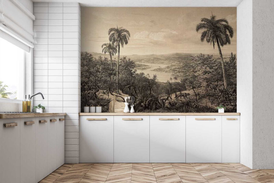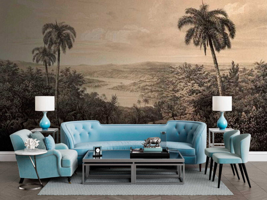 Képzelje el, hogy minden alkalommal, amikor belép egy szobába, egy nyugodt paradicsomba lép be – ez a falikép ezt lehetővé teszi! A „Fákkal és folyóval tarkított táj” élénk pálmafákkal és kanyargós folyóval a természet lényegét ragadja meg, és békés menekülést kínál a mindennapi nyüzsgésből. Tökéletes egy hangulatos olvasósarokhoz vagy a nappali szobában kiemelő elemként, és buja menekülésekre való álmodozásra csábít. Képzelje el, ahogy reggeli kávéját kortyolgatja, miközben a buja növényzetet bámulja; mintha egy kis darabot hozna a szabadból a szobába. Ráadásul a finom árnyalatok nyugodt hangulatot teremtenek, így kellemes hátteret biztosítanak minden kedvenc pillanatához. Mi lehetne ennél megnyugtatóbb?