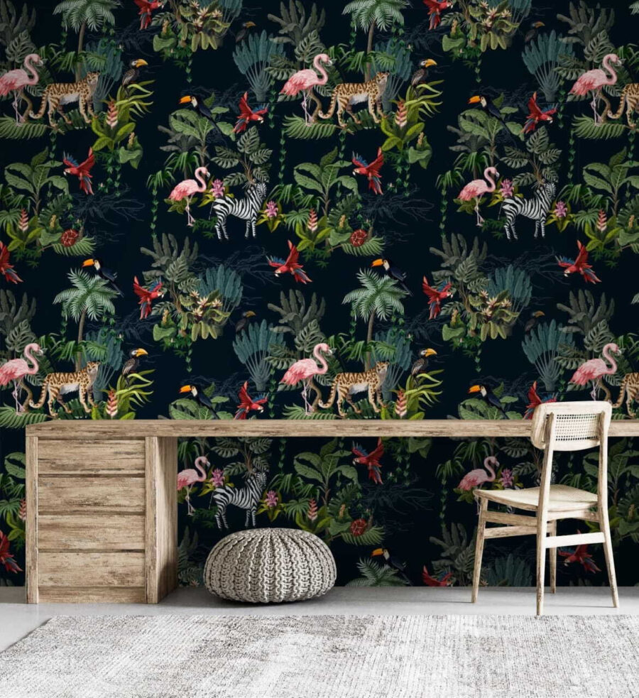 Bármelyik falat élénk menedékké varázsolhatja ezzel a lenyűgöző falfestménnyel, amelyen flamingók és zebrák láthatók buja trópusi növényzet között. Mintha egy kis darabka vadont hozna be a nappalijába – vagy a fürdőszobájába, ha merész kedvében van! Képzelje el, hogy minden alkalommal, amikor elhalad előtte, belép egy buja dzsungelbe. A gazdag színek kontrasztot képeznek a sötétebb háttérrel, így tökéletes hátteret biztosítanak hangulatos összejövetelekhez vagy egyéni pihenéshez. Ráadásul remek beszélgetésindító is – ki ne szeretne egzotikus vadvilágról csevegni? Ez a falikép nem csak dekoráció, hanem élmény is. Szépítse fel azt az egyszerű falat, és engedje, hogy a dzsungel hangulata átjárja a teret!