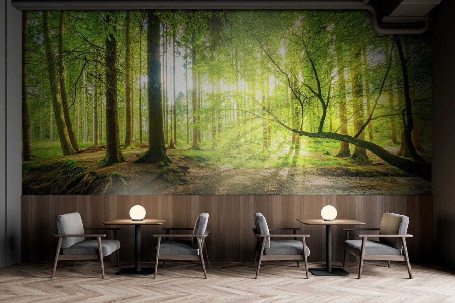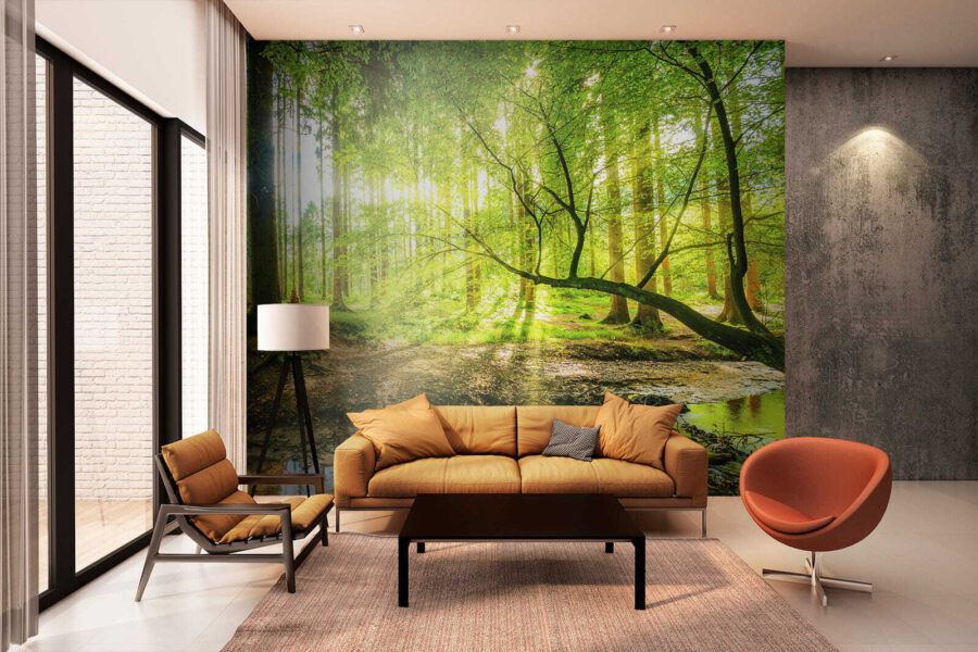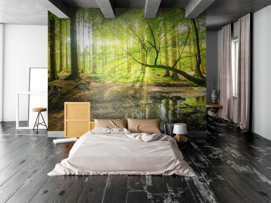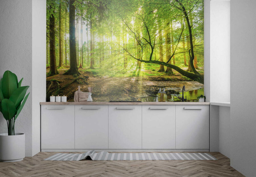 Lépj be egy álomszerű menekülésbe a “Napfényes erdő csillogó patakkal” falfestmény segítségével. Képzelje el, hogy helyiségét egy nyugodt erdei menedékké alakítja át, ahol a fény átszűrődik a magas fákon, és a természet suttogása tölti be a levegőt. Képzelje el ezt a falfestményt a falán, és hozza be a természet egy darabkáját a nappalijába. Olyan, mintha egy darabka kemping varázslatot birtokolna, a bosszantó bogarak nélkül. A vibráló zöldek és a patak lágy áramlása minden egyes pillantás egy-két álmodozásra ösztönözhet. Egy kényelmes takaró és egy jó könyv? Egyértelműen nyerő kombináció!