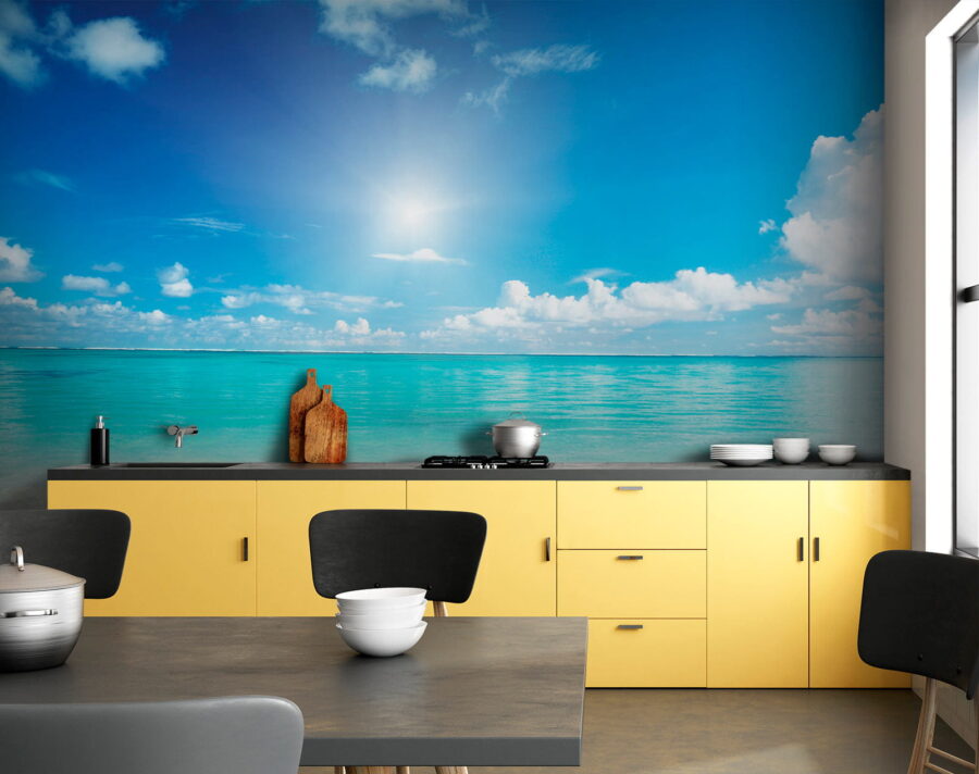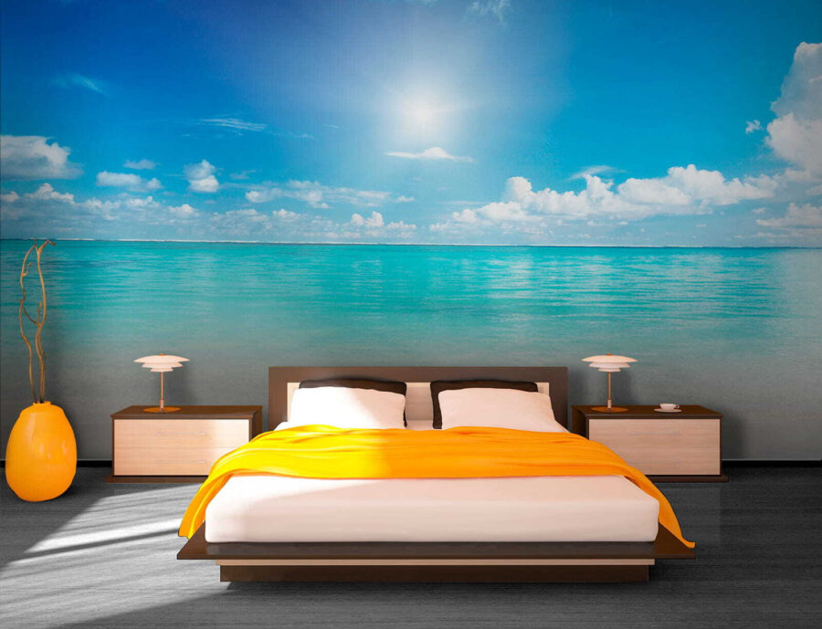 Alakítson át bármilyen szobát nyugodt pihenőhellyé ezzel a lenyűgöző freskóval, amelyen kék égbolt, pelyhes felhők és a ragyogó nap meleg ragyogása látható. Képzelje el, hogy belép a helyiségébe, és úgy érzi, mintha egy békés tengerpartra lépett volna – még akkor is, ha ez csak a nappalija. Ez a freskó a tengerparti hangulat lényegét ragadja meg, nyugalomra és pihenésre hívva. Tökéletes az álmodozáshoz vagy a következő óceáni kiruccanás megtervezéséhez, és könnyedén behozza a természet egy szeletét a belső térbe. Ki ne szeretne olyan látványra ébredni, amely a napsütésről és a lágy, lágy hullámokról szól? Olyan, mint egy nyaralás a falakon!