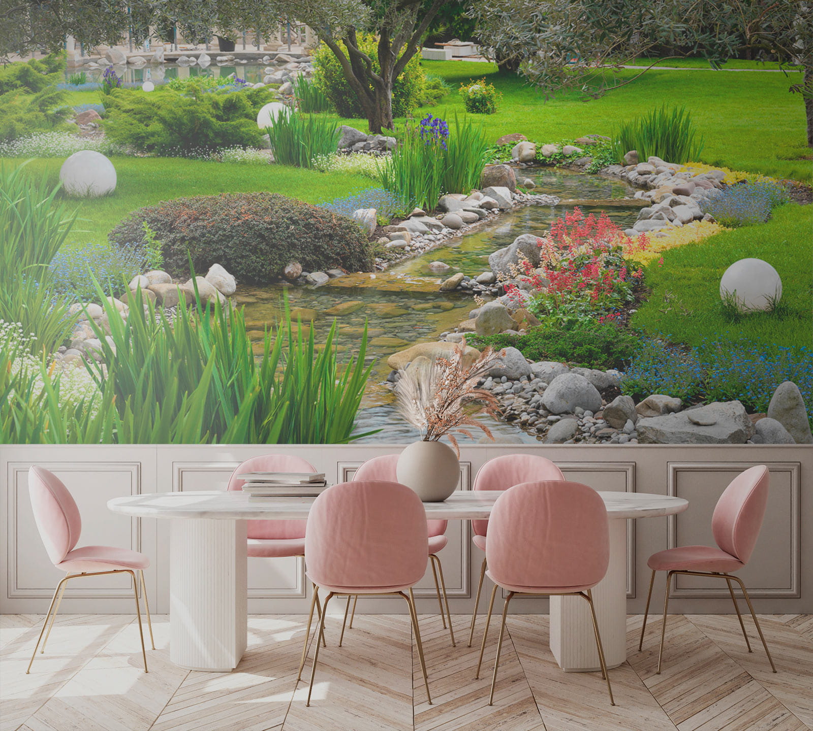 A „Parkon átfolyó patak” falfestménnyel bármelyik falat frissítő menedékké varázsolhatja. Képzelje el, hogy minden reggel egy nyugodt patak csobogására ébred, amely gyengéden folyik a buja növényzet között – mennyei, igaz? Ez a falfestmény egy darabka természetet hoz a lakásba, tökéletes egy hangulatos olvasósarokhoz, vagy akár egy otthoni irodához is, amelynek egy kis hangulatjavításra van szüksége. Képzelje el, ahogy kávét kortyolgat, miközben élénk színű vadvirágokat és a nyugtató vízfolyást bámulja. Mintha egy mini-vakáción lenne, csak csomagolás nélkül! A színek gyönyörűen kiugranak, így minden tér élettel teli és barátságos lesz. És legyünk őszinték, ki ne szeretne egy kis darabot a külső tér békéjéből a nappalijába csempészni?