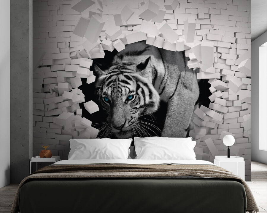 Sziasztok! Gondoltál már arra, hogy egy vad tigris csak úgy áttöri a faladat? Nos, a “Tigris áttöri a fehér téglafalat” freskóval olyan, mintha meghívnád a vad energiát egyenesen a lakótérbe! Ez a mű az erő és a stílus vad keveréke, egy fehér téglafalból kitörő tigrissel – teljesen epikus, igaz? Tökéletes arra, hogy egy kis drámát vigyen bármelyik szobába. Képzeld el vendégeid arcát, amikor belépve ez a fenséges állat “köszönti” őket. Olyan, mintha egy mini szafari kalandot hoznál az otthonodba – útlevél nélkül! 🐅✨