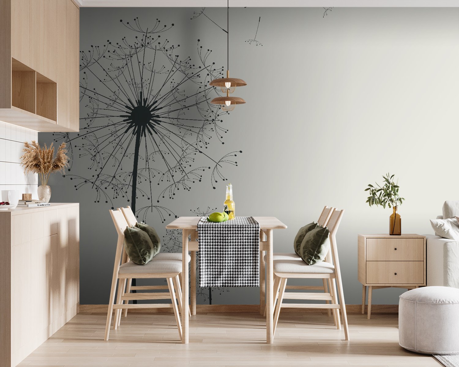 Képzelje el, hogy belép egy olyan térbe, ahol a lágy szellőben finoman lengedező pitypangok virágoznak. Ez a falfestmény, a „Delicate Seeds Drift in the Breeze” (Finom magok a szellőben) életre kelti ezt az álmot. Elegáns vonalakkal és légies hangulattal a falakat nyugodt menedékekké varázsolja.
