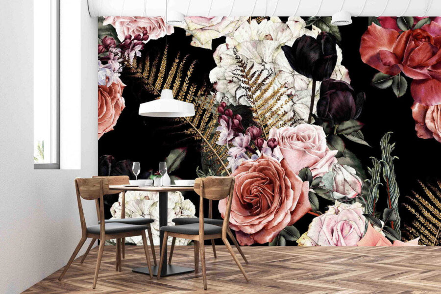 Bármelyik falat virágzó szentéllyé varázsolhatja ezzel a lenyűgöző virágos falfestménnyel. Képzelje el a vibráló rózsákat finom árnyalatokban egy mély háttér előtt – mint a természet konfettijét otthonában. Tudod, elképesztő, hogy egyetlen fal hogyan tud életet lehelni egy szobába, igaz? Képzelje el, ahogy a reggeli kávéját szürcsölgetve ihletet merít ezekből a csodás virágokból. A barátok talán még a szemüket is megdobogtatják, mert meggyőződtek róla, hogy hangulatos kertté varázsoltad a teret! Tökéletes módja annak, hogy a természetet a beltérbe varázsolja, az öntözőkanna nélkül. Miért ne hagyná, hogy ezek a virágok még a legunalmasabb napot is feldobják?