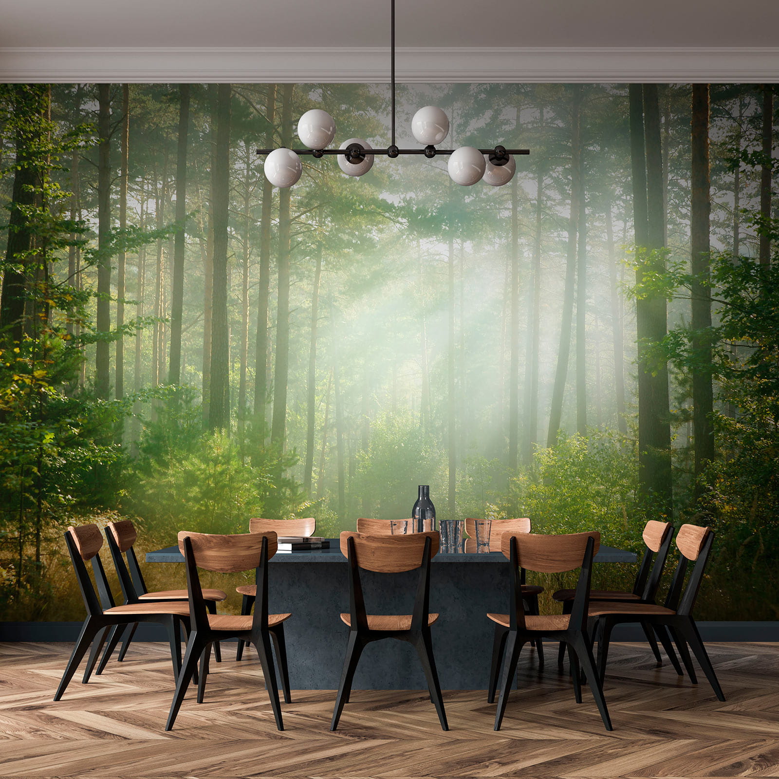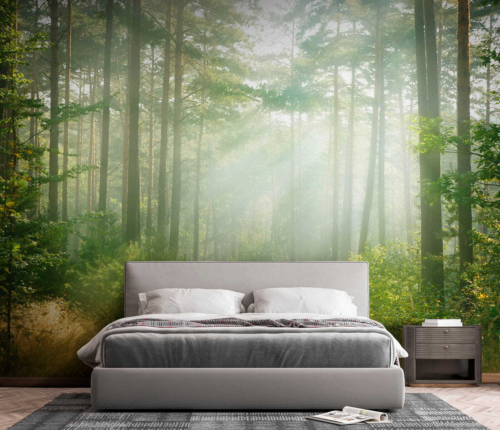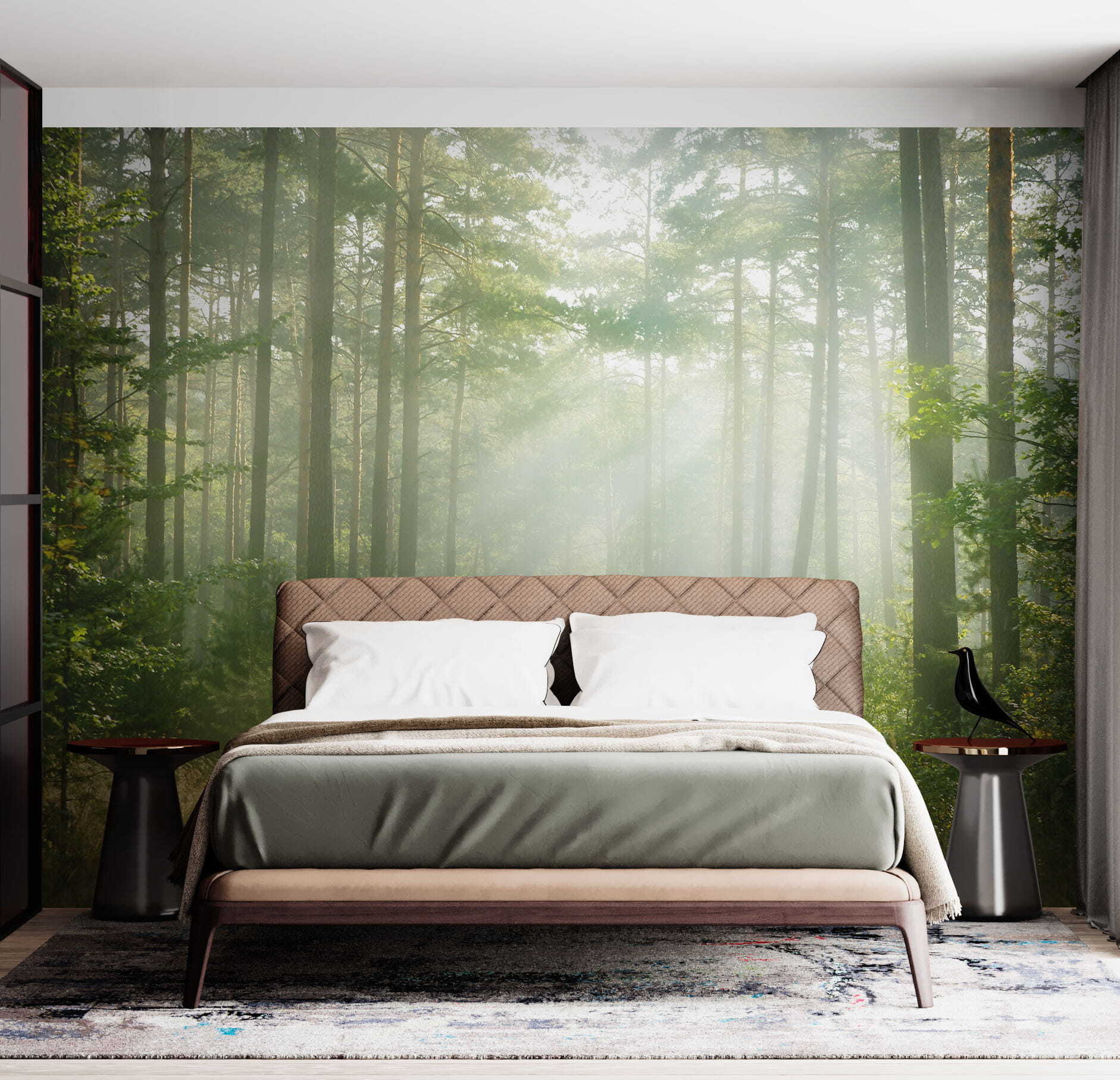 Alakítsa át terét egy nyugodt erdei üdülőhellyé ezzel a falfestménnyel, amelyen a napfény magas erdei fákon keresztül árad. Képzelje el, hogy minden alkalommal, amikor belép a szobába, egy napsütötte erdőbe lép – álomszép, nem igaz? A leveleken átszűrődő fény gyengéd ragyogása melegséget és nyugalmat áraszt, így tökéletes egy hangulatos olvasósarokba vagy egy élénk nappaliba. Olyan, mint egy lélegzetvételnyi friss levegő a bosszantó bogarak nélkül. Akár teát szürcsölsz, akár álmodozol, ez a falfestmény a béke és az inspiráció pillanataira invitál. Dobd fel a falaidat, és engedd be a természet varázsát!
