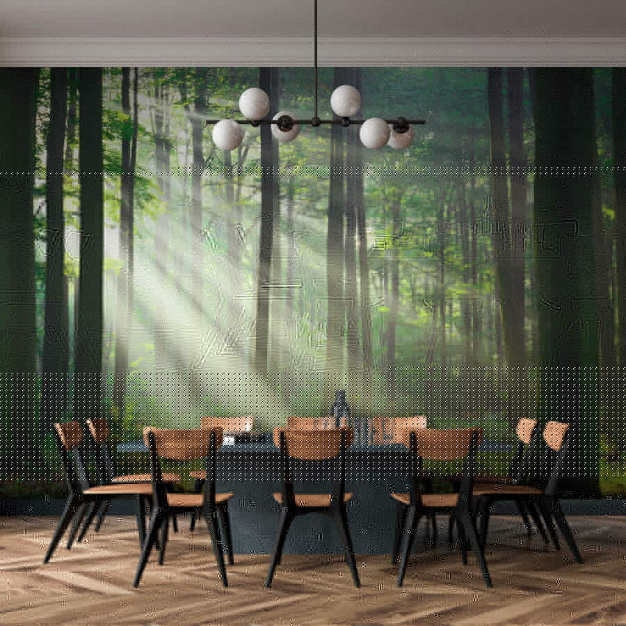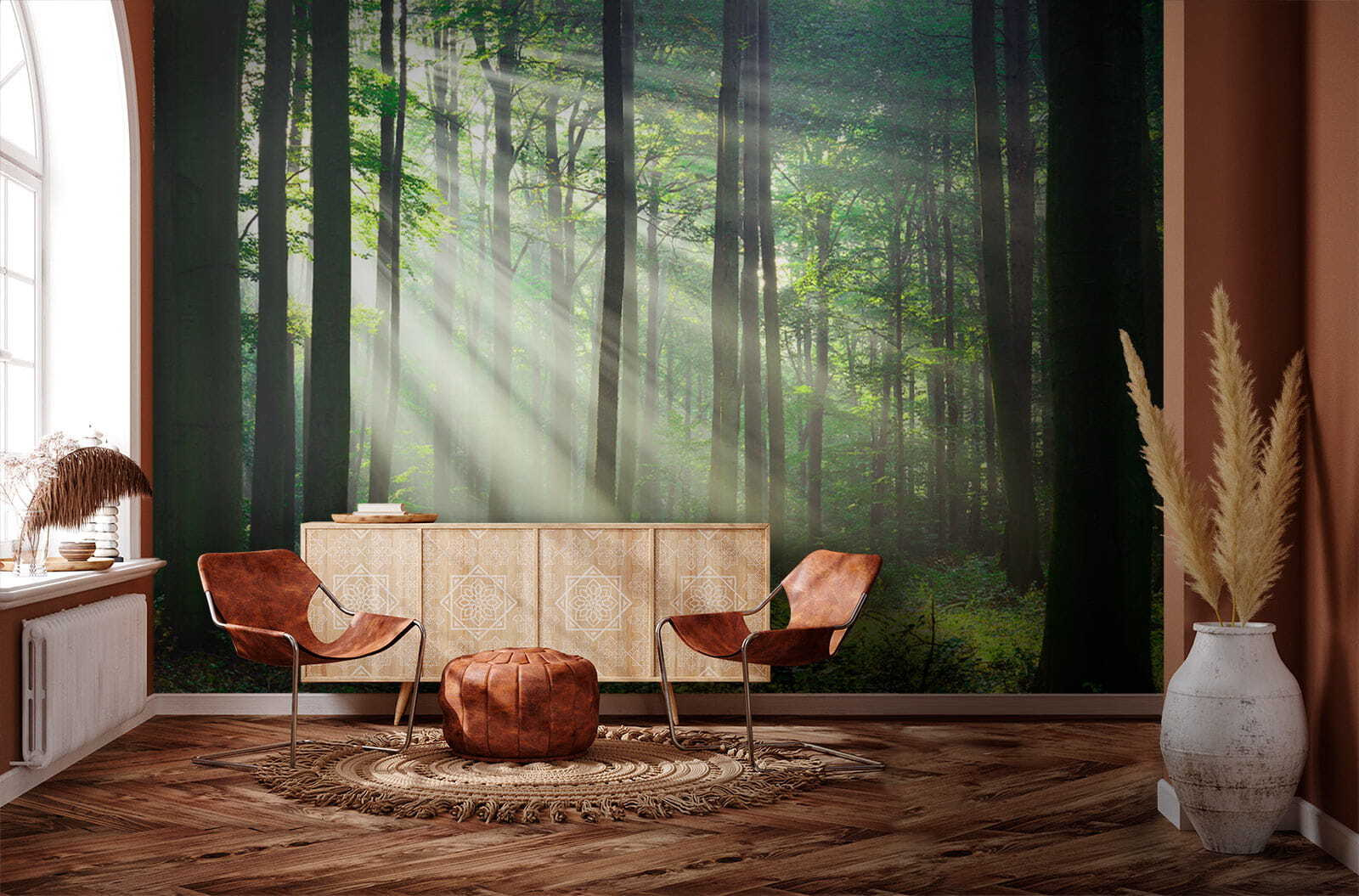 Gondoltál már arra, hogy egy napsütötte erdőben sétálsz a nappalidban? Ez a falfestmény, “Az erdőn átáramló napsugarak” ezt az álomszerű élményt hozza el a helyiségedbe. Képzelje el, ahogy a napfény szelíd sugarai átszűrődnek a magas, fenséges fákon – olyan, mint egy nyugodt természeti elvonulás, anélkül, hogy elhagyná a kanapéját. A buja zöldek és a meleg sugarak azonnal a nyugalom és a békesség érzetét keltik. Tökéletes a természet szerelmeseinek és mindazoknak, akik egy kicsit a természetet szeretnék bevinni a házba. Gyakorlatilag hallani fogod a madarak csicsergését! Ideális otthonos, hívogató légkör megteremtéséhez otthonában. A vendégek ámulatba fognak esni. És talán, csak talán, te is egy kicsit boldogabbnak fogod érezni magad, valahányszor ránézel. Nagyszerű minden olyan térbe, amelynek szüksége van egy kis természetes szépségre.