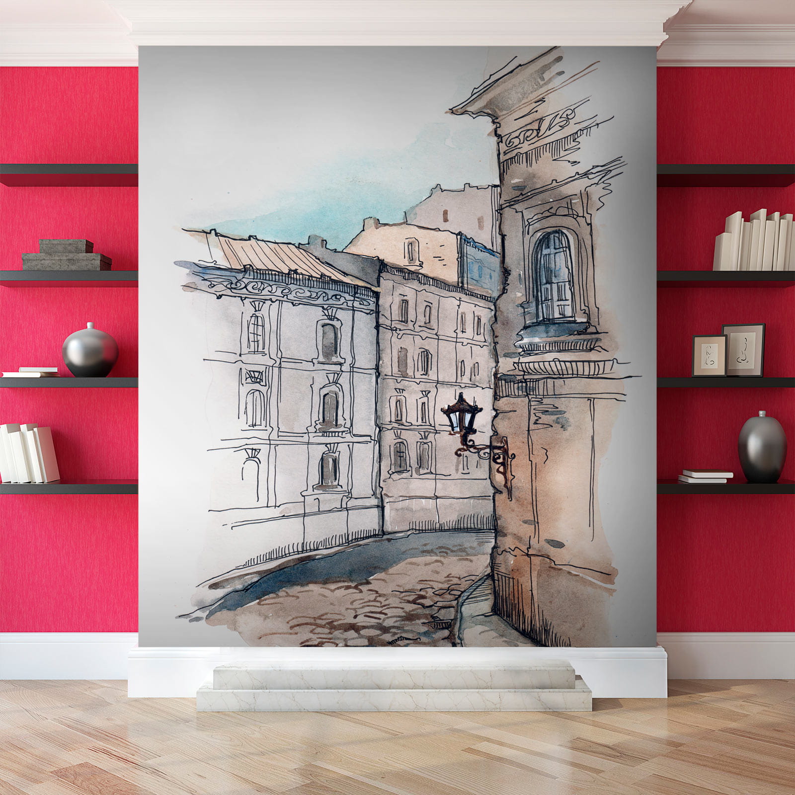 Ah, ez a falfestmény valami különleges, nem igaz? “Egy épület rajza” olyan bájos, mint egy csendes séta egy régi európai város festői, macskaköves utcáján. Az akvarell stílus lágy, nosztalgikus jelleget kölcsönöz, mintha maga a helyszín is finoman suttogna a régmúlt történeteiről.