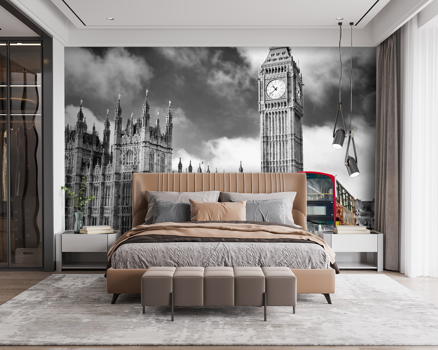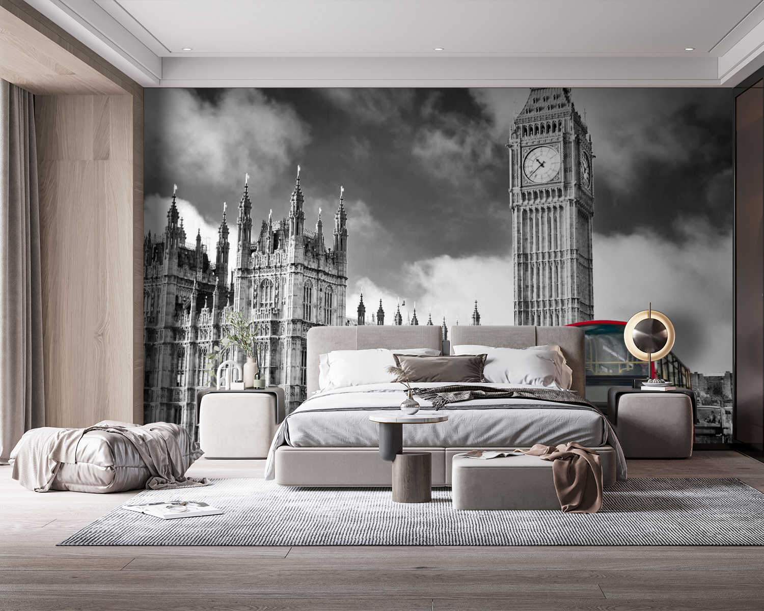 Alakítsd át a teredet ezzel a lenyűgöző falfestménnyel, amelyen egy élénkpiros emeletes busz suhant el egy fenséges óratorony mellett – igen, szinte integet neked, hogy gyere át egy csésze teára! A fekete-fehér építészet és a piros szín keveréke olyan, mintha egy londoni képeslapot akasztottál volna a faladra. Képzeld el, ahogy a barátaid belépnek, és a szemük nosztalgiától vagy kíváncsiságtól ragyog. Ez nem csak dekoráció, hanem beszélgetésindító is, amely külföldi kalandokról szóló történeteket vált ki. Készüljön fel arra, hogy minden nap élvezze a város hangulatát! Tökéletes azok számára, akik szeretik a szeszélyességet és a varázslatos hangulatot.