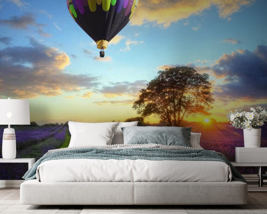 Képzelje el: egy mező, amely tele van élénk lila virágokkal, a naplemente meleg színeivel festett ég alatt. És ott, kecsesen lebegve a mező felett, egy csoport szeszélyes hőlégballon, mint cukorkaszínű álmok, amelyek repülni kezdenek. Ez a falfestmény nem csak díszít, hanem mindenkit álmodozásra és egy nyugodt világba való menekülésre invitál. Képzelje el, hogy belép a szobájába, és egy gyengéd, nyugodt szellő áramlik át rajta, mintha belépett volna a saját békés menedékébe. Mintha egy mini-vakációt élvezne a falán! Tökéletes minden olyan szobához, amelynek szüksége van egy kis vidámságra, és lágyan suttogja a kalandok és a természet szépségének meséit. Ideális azok számára, akik szeretik a virágokat, az égbolt nézését, vagy csak egy kis varázslatot a mindennapi életben. Ki ne szeretne elrepülni egy színes léggömbön a levendulamező felett?