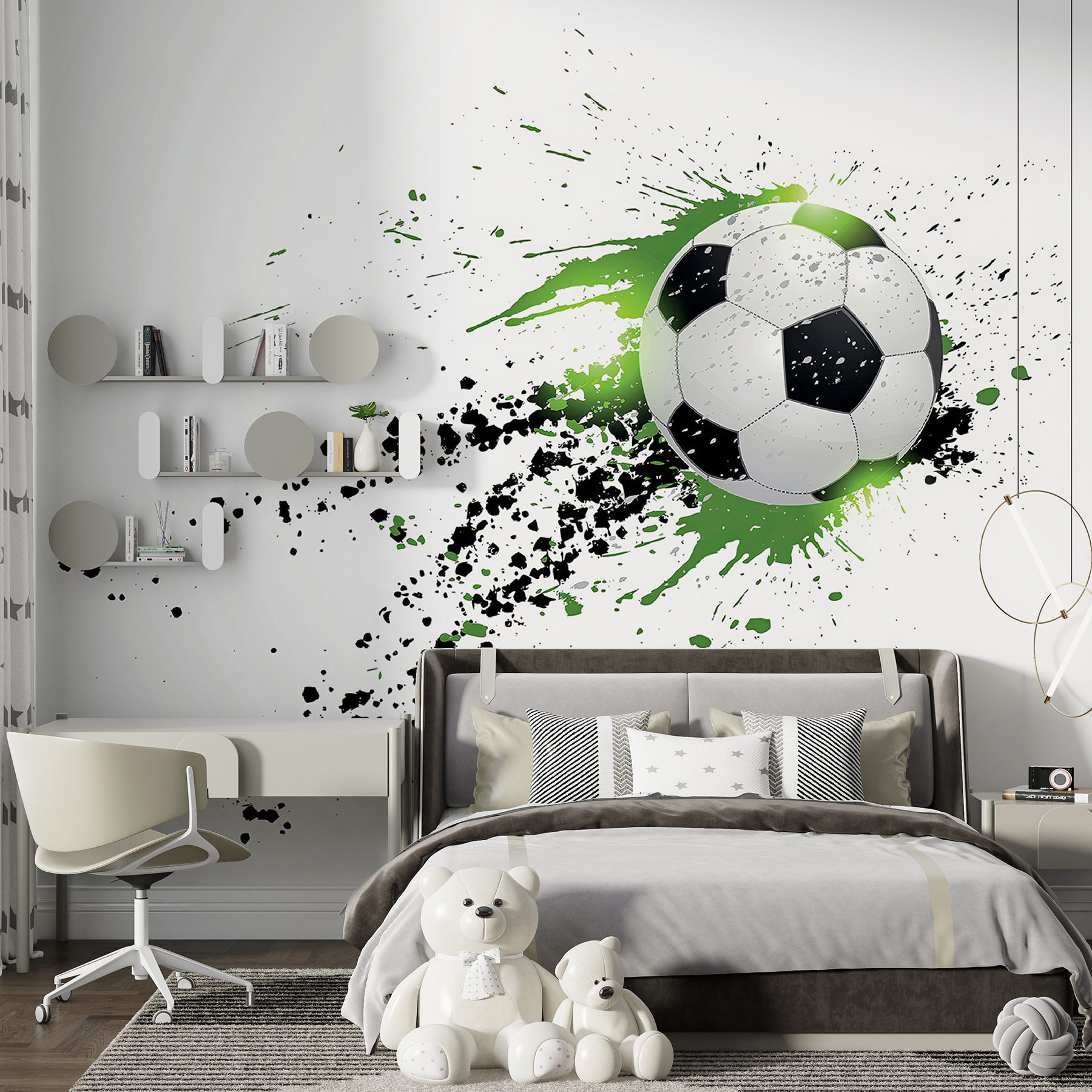 Sziasztok! Képzeld el ezt – egy színfolt és egy repülő focilabda közvetlenül a faladon. Ezt kapod a “Focilabda művészi fröccsenéssel” falfestménnyel. Olyan, mintha valaki megörökítette volna egy meccs tökéletes, akciódús pillanatát, befagyasztotta volna az időben, majd egy kis művészi érzékkel egészítette ki. A zöld és fekete fröccsenések olyan élénk, vidám hangulatot kölcsönöznek neki. Gyermeked szobája azonnal menő, sportos hellyé változik. És őszintén szólva, még a barátai is megirigyelhetnék! Gyakorlatilag hallani lehet az éljenzést és érezni az izgalmat, valahányszor csak ránézel. Teljesen nagyszerű a nagy álmokat szövögető fiatal futballfanatikusoknak, igaz?