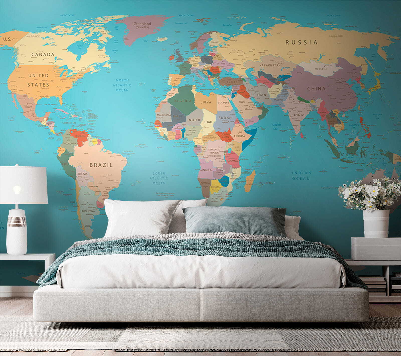Miért ne hozná be a világot – vagy legalábbis annak egy elég nagy részét – a helyiségébe ezzel a bájos falfestménnyel?