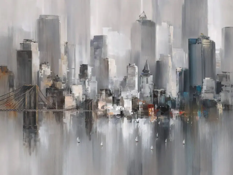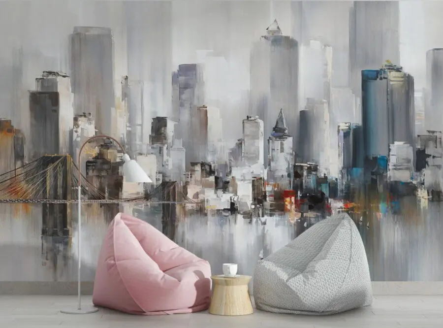Képzelje el, hogy ez a jelenet fogadja minden reggel – egy álomszerű városkép, tompa színekkel, amelyek még a legnaposabb délutánokon is hangulatos, esős napokat idéznek. Ez a freskó olyan, mint egy ablak egy békés, szinte varázslatos városra, ahol tornyok nyújtózkodnak felhők után kutatva, és apró vitorlások siklanak szelíden a nyugodt vízen. Ez az a fajta művészet, amely arra késztet, hogy egy csésze teával hátradőlj, és elveszítsd magad a gondolatokban. Tökéletes a nappaliba vagy az irodába, nyugodt, mégis élénk hangulatot kölcsönöz bármely térnek. A saját kis városi menekülésed, nincs rohanás, csak nyugalom.