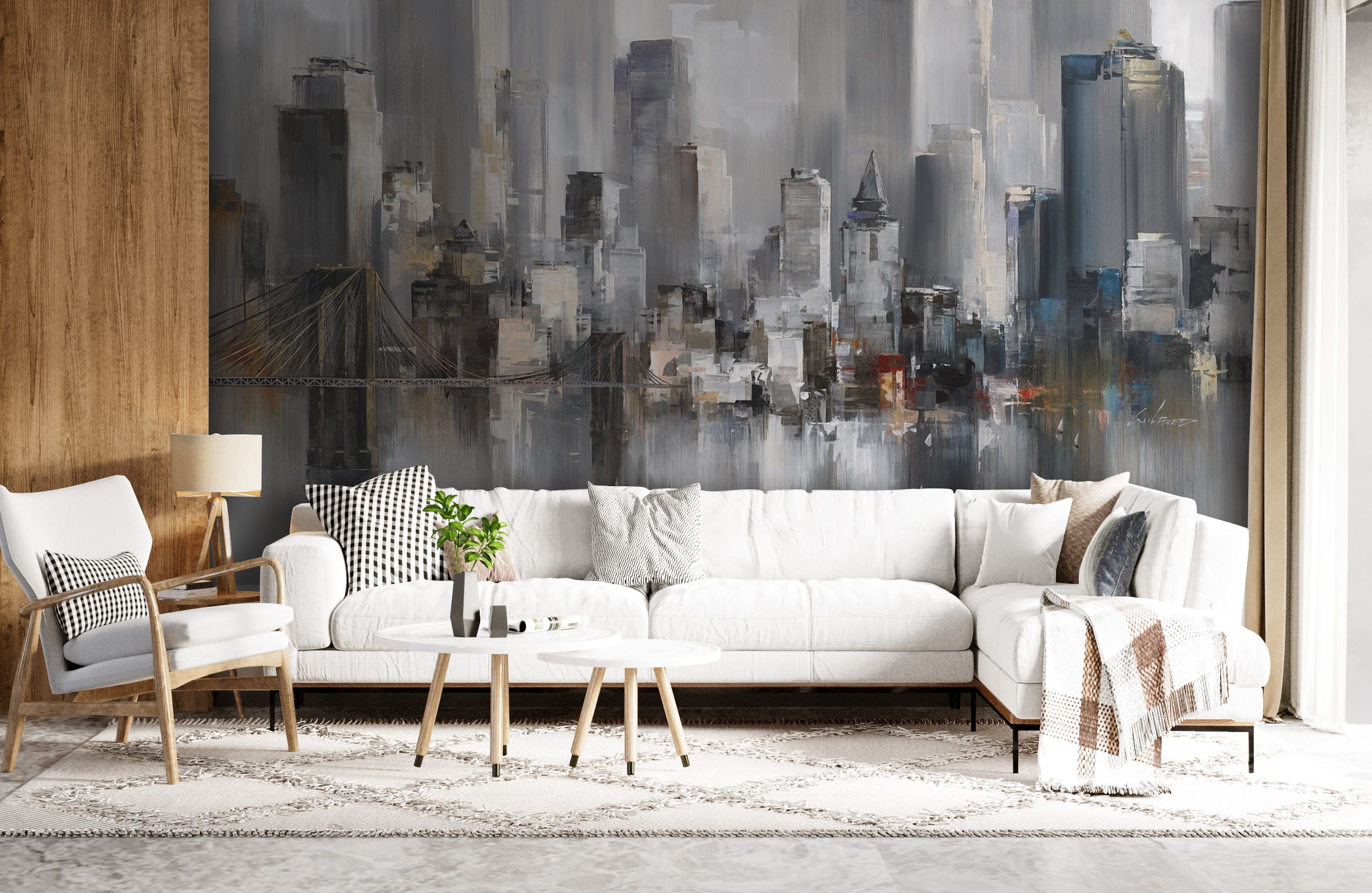 Képzelje el, hogy ez a jelenet fogadja minden reggel – egy álomszerű városkép, tompa színekkel, amelyek még a legnaposabb délutánokon is hangulatos, esős napokat idéznek. Ez a freskó olyan, mint egy ablak egy békés, szinte varázslatos városra, ahol tornyok nyújtózkodnak felhők után kutatva, és apró vitorlások siklanak szelíden a nyugodt vízen. Ez az a fajta művészet, amely arra késztet, hogy egy csésze teával hátradőlj, és elveszítsd magad a gondolatokban. Tökéletes a nappaliba vagy az irodába, nyugodt, mégis élénk hangulatot kölcsönöz bármely térnek. A saját kis városi menekülésed, nincs rohanás, csak nyugalom.