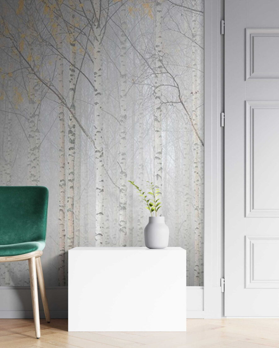 Képzelje el, hogy minden alkalommal, amikor belép a szobájába, egy ködös csodavilágba lép. Pontosan ezt nyújtja ez a “Fák csoportja egy ködös erdőben” falfestmény. A ködben csendben álló finom nyírfák nyugtató, álomszerű hangulatot teremtenek. Tökéletes azokhoz a meghitt, otthon töltött napokhoz egy könyvvel és egy csésze teával. Olyan, mintha a természet egy kis darabkája lenne a falon – a sáros csizmákat leszámítva. Ez a falfestmény egy csipetnyi nyugodt erdei bájt kölcsönöz a helyiségének, így az egyszerre lesz nyugodt és időtlen. Ideális a természet szerelmeseinek, vagy bárkinek, aki egy kis erdei varázslatot szeretne otthonába varázsolni. Legyen szó akár a nappaliról, a hálószobáról, vagy esetleg az otthoni irodáról – mindent egy kicsit elvarázsoltnak érezhetsz tőle.