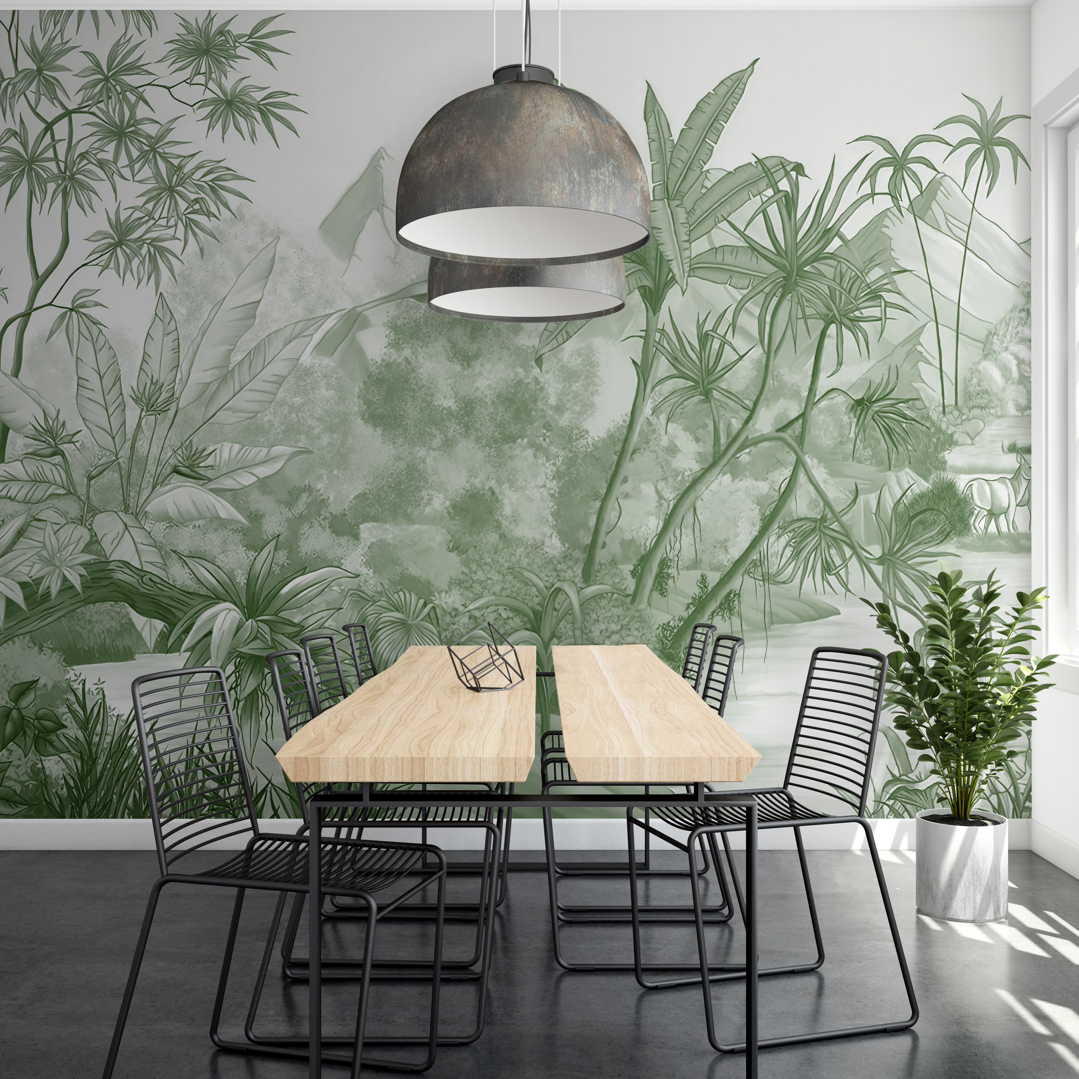 Álmodtál már arról, hogy a dzsungelbe menekülsz, de a szúnyogcsípések és a páratartalom nélkül? Ez a “Dzsungeltáj buja növényzettel” című falfestmény a belépőjegyed a nyugalomba, egyenesen a nappalidból. Képzelje el: kávét szürcsölgetve, egy egzotikus zölddel teli tájban elmerülve – olyan, mintha a természet ölelne. Azok a magasra törő pálmafák és sűrű lombok azonnal mini paradicsommá változtatnak bármilyen unalmas falat. Képzelje el, ahogy a vendégek besétálnak, és “hűha!”, mintha csak egy esőerdőbe léptek volna. Ez több mint dekoráció; azonnali hangulatfokozó! Akár álmodozik, akár dolgozik, ez a falfestmény olyan nyugodt, vibráló hangulatot teremt, amelyet nehéz felülmúlni. Tökéletes mindenkinek, aki szereti a természetet, de nem akar a dzsungelben végzett tényleges munkával foglalkozni. Merülj el, ez egy vad (mégis nyugodt) utazás!