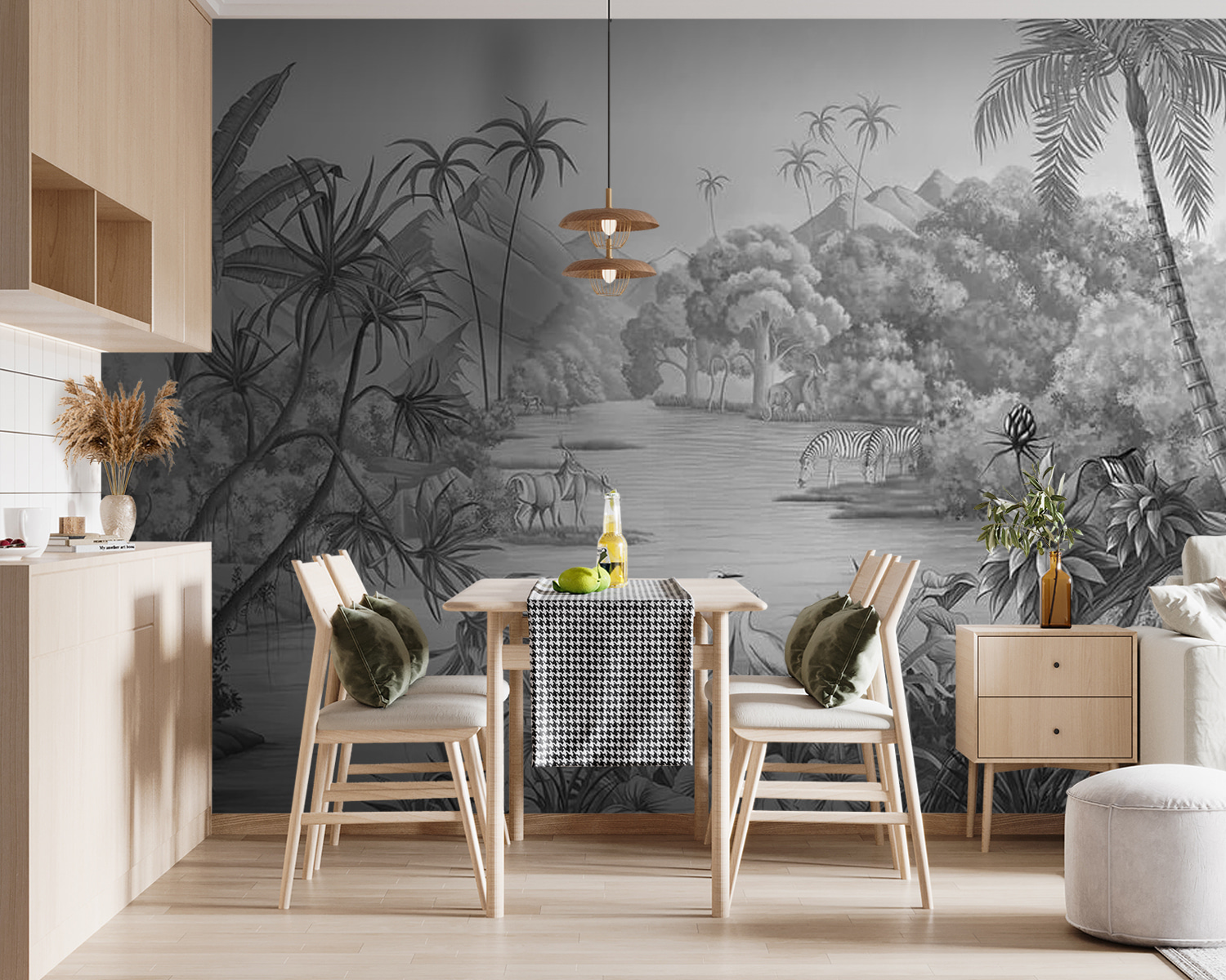 Kalandvágyónak érzi magát? Ez a “Fotótapéta Zebras Drinking Water” nyomtatás több mint egyszerű dekoráció – olyan, mintha egy titkos dzsungel oázisába kukkantana be. Képzelje el, ahogy a reggeli kávéját kortyolgatja, miközben a zebrák, ezek a stílusos csíkos csodák, egy nyugodt vízlelőhely mellett gyönyörködnek. Ez nem csak művészet, hanem egy mini vakáció a nyüzsgésből. Ez a falfestmény tökéletesen alkalmas arra, hogy egy kis vadságot vigyen a terébe, hiszen a dzsungel fáinak buja hangulatát az afrikai vadvilág nyugodt bájával ötvözi. Gondolj rá úgy, mint egy gyengéd lökés a kalandvágyó lelkednek, itt a falon – repülőjegy nélkül!