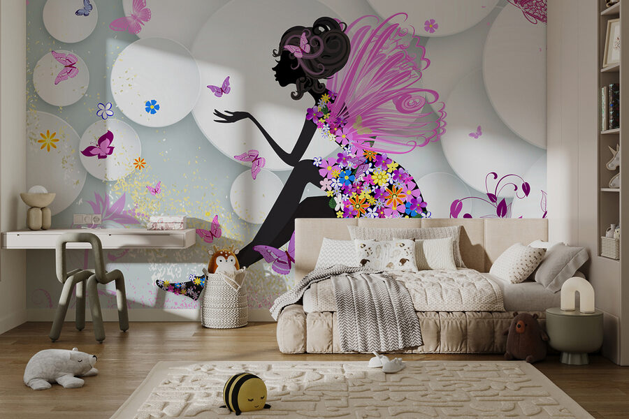 A bonyolult kék virág részletei és a játékos pillangók szelíd, varázslatos hangulatot árasztanak, ami tökéletes a képzelet beindításához. Képzeld el, ahogy a finom szárnyak a szobában repkednek – túl aranyos, nem igaz? A lágy árnyalatok és az élénk elemek elragadó keveréke, amely bármely helyiséget varázslatossá és egyedivé varázsol. Remekül illik a gyermekfalra, mert finoman ötvözi a vidámságot egy kis bájjal.