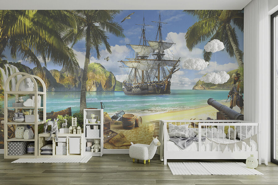 Változtasson bármelyik szobát élénk kalanddá ezzel a feltűnő falfestménnyel. Képzeld el, hogy egy olyan térbe lépsz, ahol a vibráló színek egy trópusi paradicsomba repítenek, egy fenséges hajóval és egy játékos kalózzal, aki őrködik! Ez a falfestmény nem csak dekoráció – ez a képzelet kapuja. A gyerekek imádni fogják a szeszély és az izgalom keverékét, míg a felnőttek a kincskeresés és a vakmerő szökések emlékeire emlékezhetnek. Olyan, mintha egy mini nyaralás lenne otthon! Egy hétköznapi falat varázsoljon lenyűgöző háttérré, amely minden alkalommal örömöt és kreativitást ébreszt, amikor arra jár. Csak képzelje el – egy hangulatos olvasósarok vagy egy olyan gyerekjátszószoba, amely minden nap olyan, mint egy utazás.