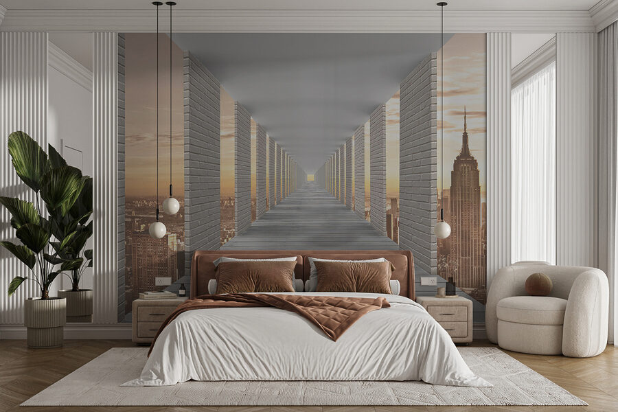 Képzelje el, hogy ez az álomszép falfestmény a falán van, ahol egy véget nem érő folyosó egy varázslatos városképbe vezet. A magas épület hűvös, éles vonalai és a végtelen ablakok mélységérzetet adnak a térnek – szinte mintha a szobád felnőtt volna, és a kifinomultság egy teljesen új szintjét érte volna el. Az “ablakokon” kívül a naplemente meleg árnyalatai hangulatos, mégis tágas hangulatot kölcsönöznek, amely tökéletes az álmodozáshoz vagy ahhoz, hogy úgy tegyél, mintha egy előkelő városi loftban lennél. Olyan, mintha a falaid felfedezték volna, hogy el tudnak szökni anélkül, hogy téged hátrahagynának! Teljesen átalakít egy unalmas falat beszélgetésindítóvá. Ennek a falfestménynek a hangulata annyira… városiasan elegáns, tudod? És ki ne szeretne ebből egy csipetnyit a nappalijába vagy az irodájába?