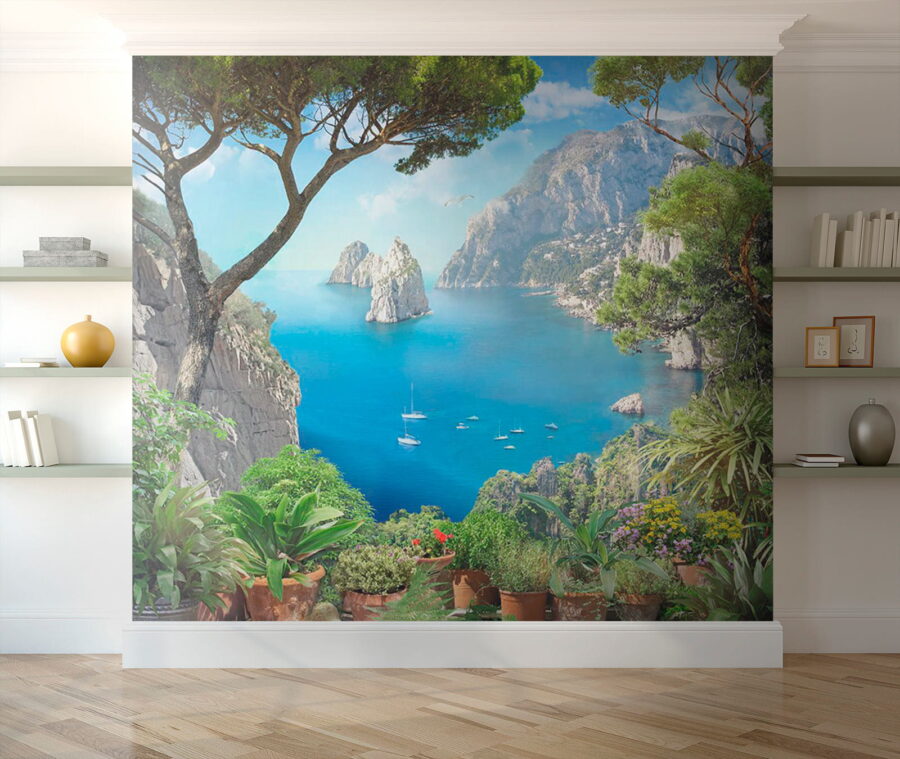 Alakítsd át az unalmas falat lélegzetelállító menedékké ezzel a lenyűgöző falfestménnyel, a „Kilátás a tengerre egy szikláról”. Képzeld el, ahogy kávét kortyolgatsz, miközben élvezed a vibráló kék és buja zöld színeket, mintha egy szikláról néznéd a csillogó tengert. Ez a falfestmény olyan, mint egy mini vakáció minden nap! Megörökíti a természet szépségét, a bájos cserepes növények pedig hangulatos hangulatot kölcsönöznek neki. Képzelje el a madarak csicsergését és a sós szellőt – na jó, talán nem, de egy lány álmodozhat, nem igaz? Ez a műalkotás tökéletes nappalikba vagy hangulatos zugokba, és nyugodt partokról és szelíd hullámokról álmodozásra invitál.