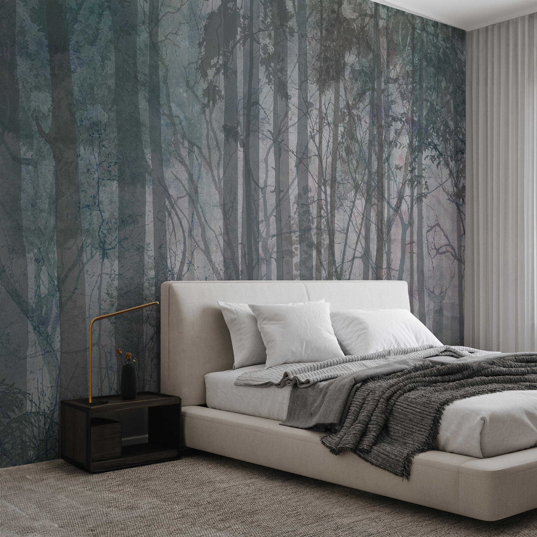 Képzelje el ezt: Mozgalmas napod volt, de aztán megpillantod ezt a falfestményt, és hirtelen ebben a nyugodt erdőben találod magad. Egy kis menekülés anélkül, hogy el kellene hagynod az otthonodat. Legyen az a nappali, a hálószoba vagy akár egy hangulatos olvasósarok, ez a falfestmény bármilyen teret békés elvonulási hellyé varázsol.