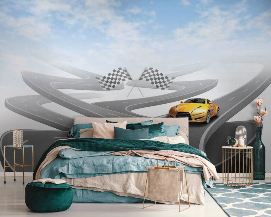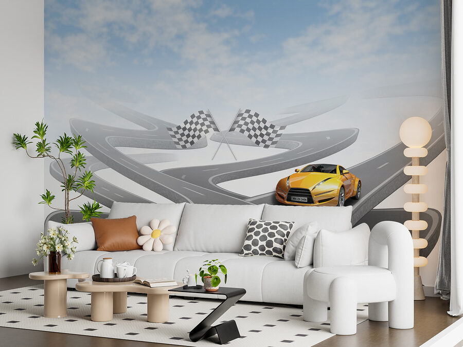 Álmodozott már arról, hogy egy mutatós sportautóval száguldozzon végig a kanyargós utakon? Ez a falfestmény gondoskodik rólad! Egy élénksárga sportkocsit ábrázol egy végtelennek tűnő, kanyargós úton, egy olyan kék égbolt alatt, hogy a falaidat is életre keltheti. Tökéletes az autórajongóknak, a versenyzős kalandokról álmodozó gyerekeknek, vagy bárkinek, aki szeret egy csipetnyi izgalmat a dekorációjában. Képzeld el, milyen történeteket mesélhetnél, például száguldozhatnál a hegyeken át, vagy cirkálhatnál a tengerparti autópályákon a széllel a hajadban. Olyan ez, mint egy mini kiruccanás, egyenesen a faladon!