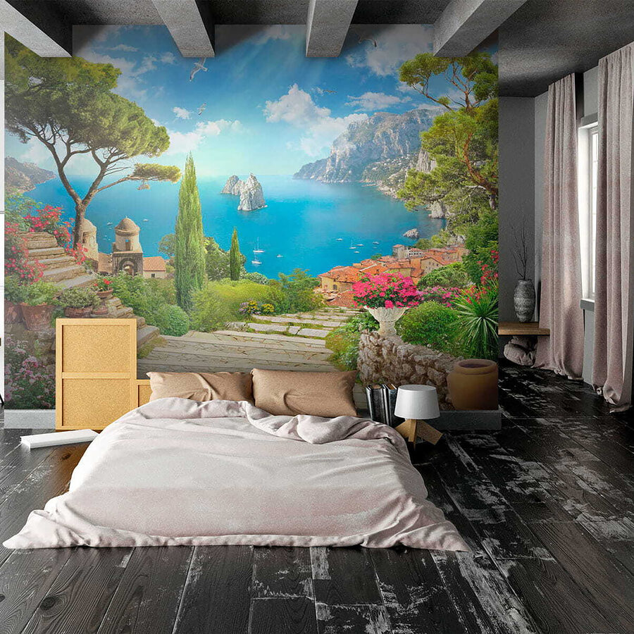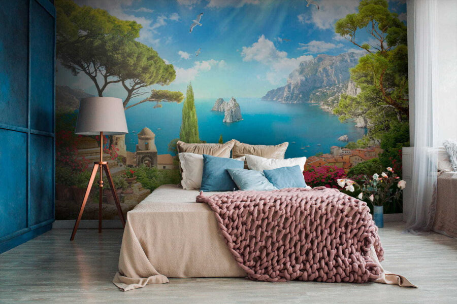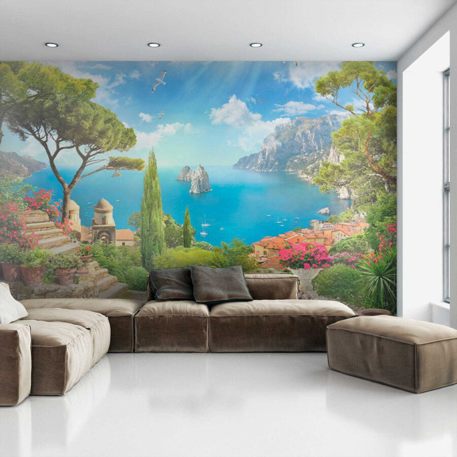 Képzelje el: belép a nappalijába, de várjon csak – helyette egy lenyűgöző tengerparti kilátás fogadja. A “Fali falfestmények Madár repül az égen” segítségével a falaid nagyszerű ragyogást kapnak. Olyan, mintha egy ablakot adnál hozzá, ahonnan egyenesen a Földközi-tengerre nyílik kilátás, egy csipetnyi fantáziával. Gondolj a vibráló zöldre, a bájos kőösvényekre és a magasban szárnyaló madarakra.