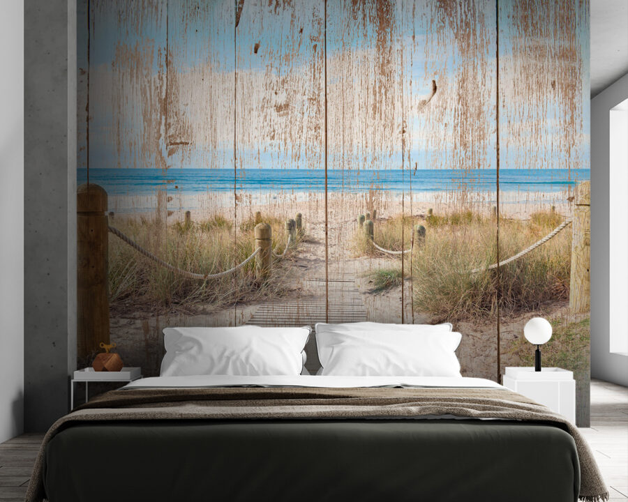 Képzelje el, hogy belép egy hangulatos tengerparti nyaralóba, még akkor is, ha csak otthon van. Ez a falfestmény, amelyen egy bájos, egyenesen az óceánhoz vezető faút látható, lustálkodó nyarakról és sós szellőről suttog. Mintha minden pillantás egy mini-vakáció lenne, nem gondolja? A kopott fa nosztalgikus hangulatot kölcsönöz, mintha számtalan naplementét látott volna már. Képzelje el, ahogy reggeli kávéját kortyolgatja, miközben a szelíd hullámokat nézi. Ki tudja, talán inspirál egy spontán tengerparti kirándulásra! Tökéletes minden tengerparti szerelmeseinek, akik egy kis nyugalmat, szórakozást és egy csipetnyi kalandot szeretnének vinni a lakásukba.