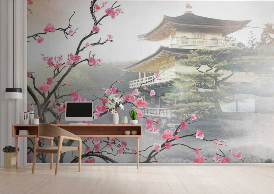 Fotótapéta Virágok keretezik a nyugodt japán templomot termékről 3 értékelés