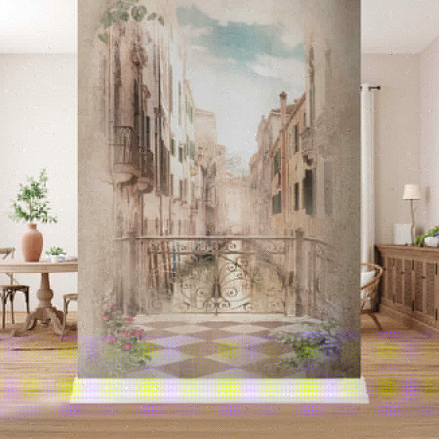 Képzelje el, hogy minden nap egy festői velencei utcán sétál – de repülőjegy nélkül. Ezt kínálja ez a “Falfestmények velencei utcán díszes erkéllyel”. Olyan, mintha hirtelen a legbájosabb európai kilátást kapnád a nappalidban. Ahogy a díszes erkély kinyúlik, szinte arra invitál, hogy támaszkodj rá, és leskelődj az utcára? Abszolút álomszerű.
