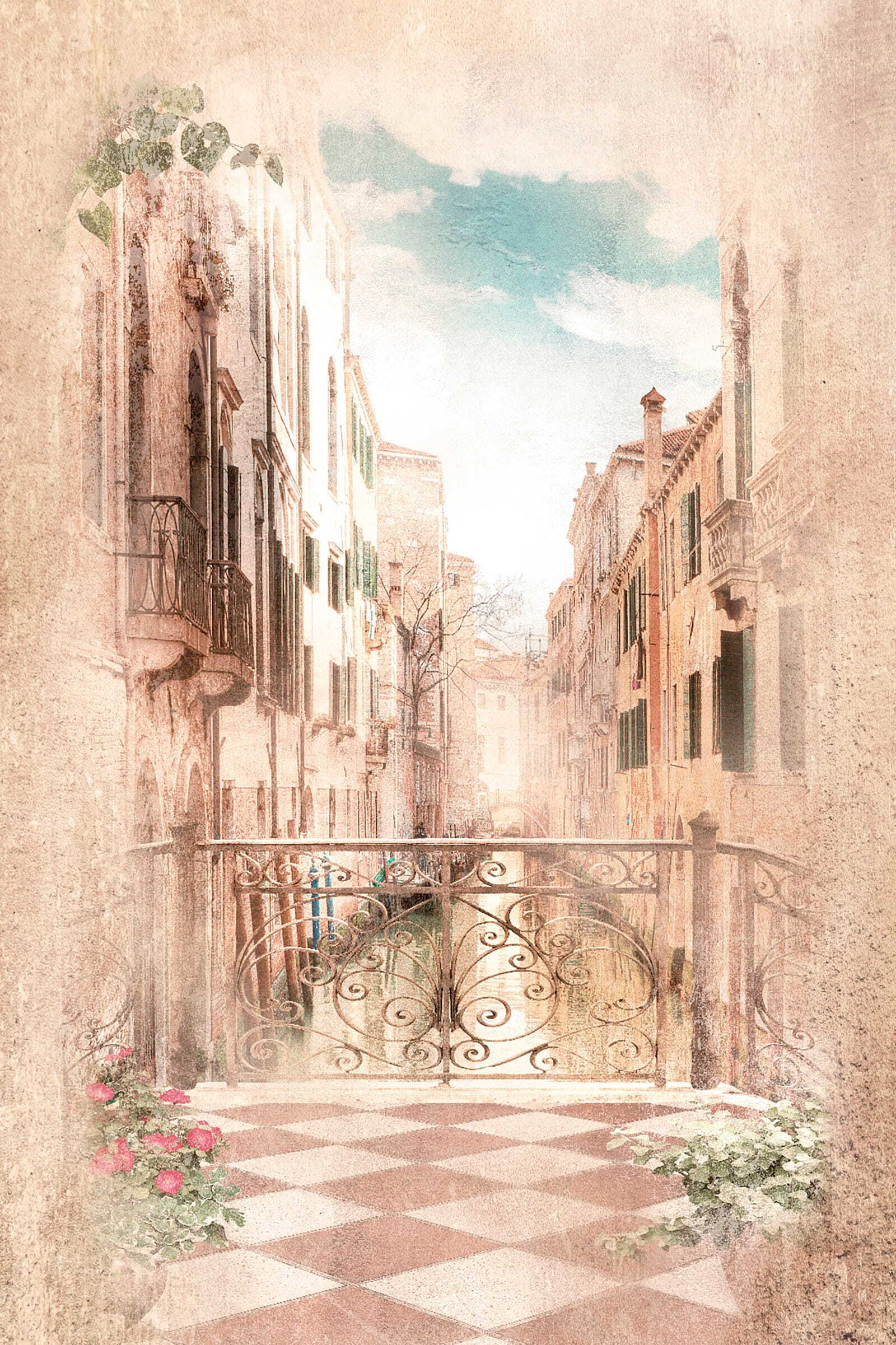 Érzed ezt? Ez a csatorna lágy szellője, amely felsuttog. Azok a lágy pasztellszínek, az elöregedett épületek épphogy, és az a finom napfény? Mindez meleg, szinte nosztalgikus hangulatot teremt. Szinte hallod a gondolisták énekét!