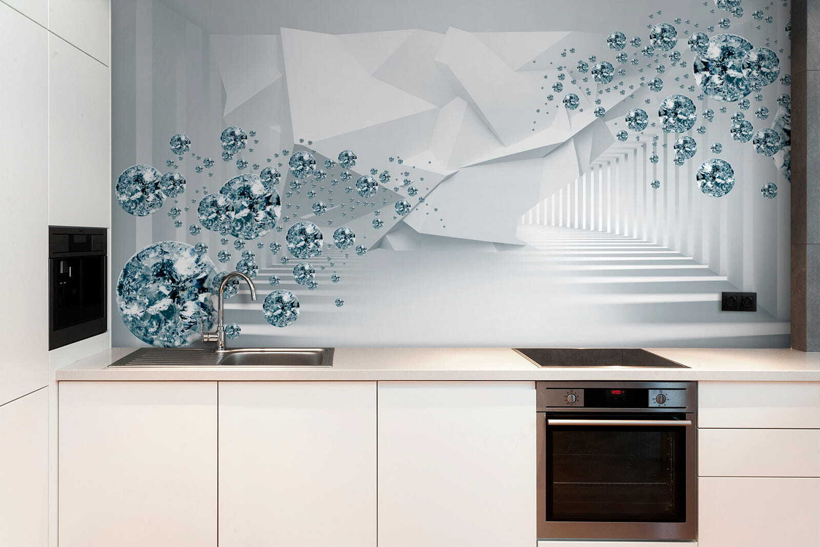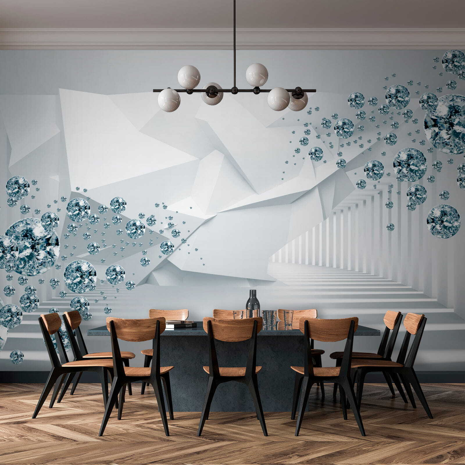 Fotótapéta Lebegő drágakövek egy futurisztikus folyosón. (Cikkszám: u60340)
