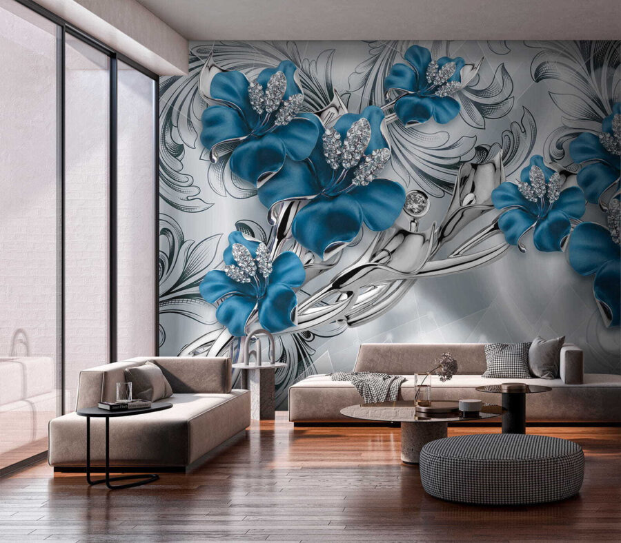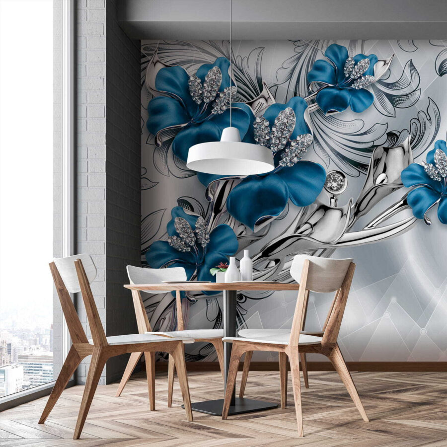 Fotótapéta Díszes kék virágok kristályokkal termékről 2 értékelés
