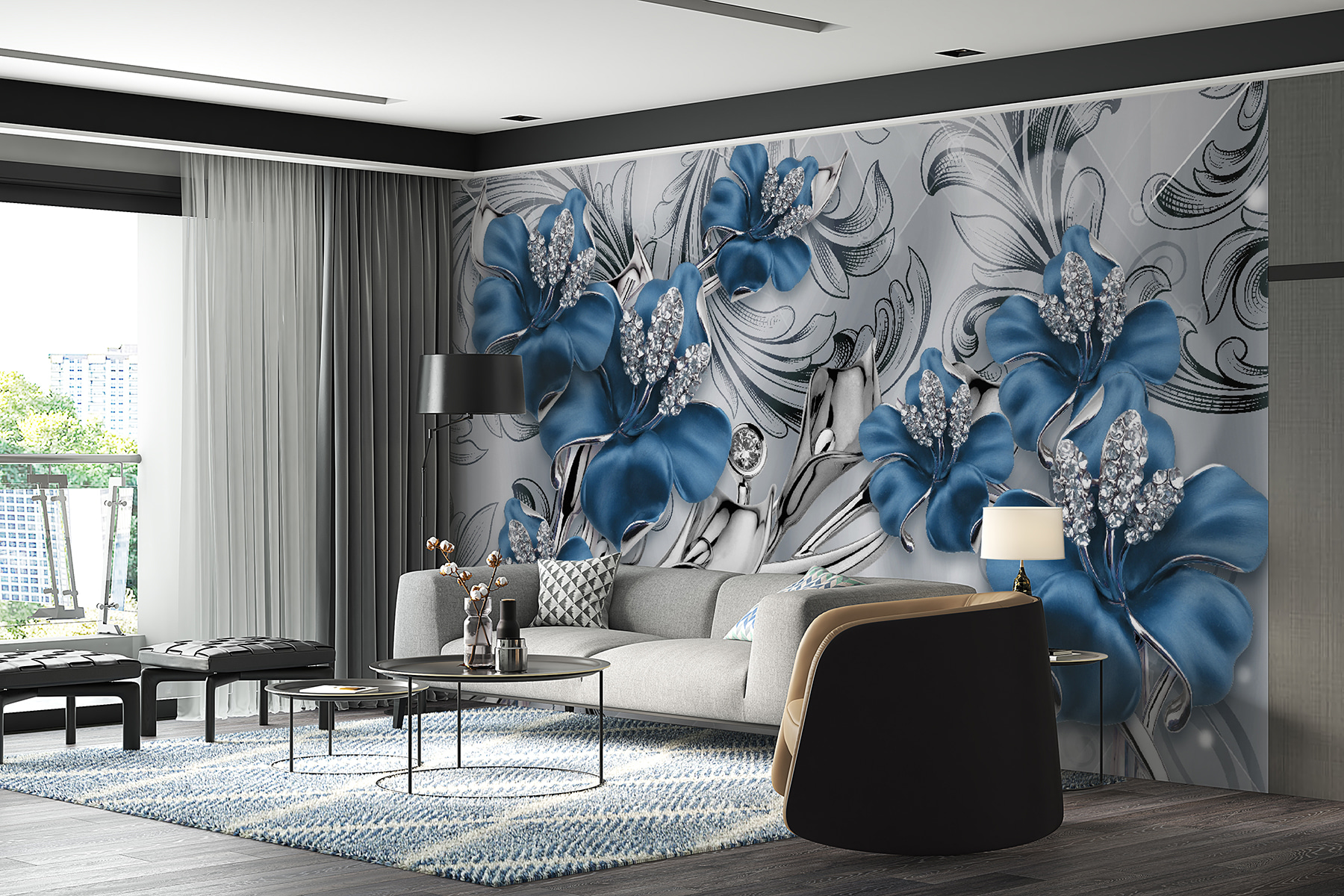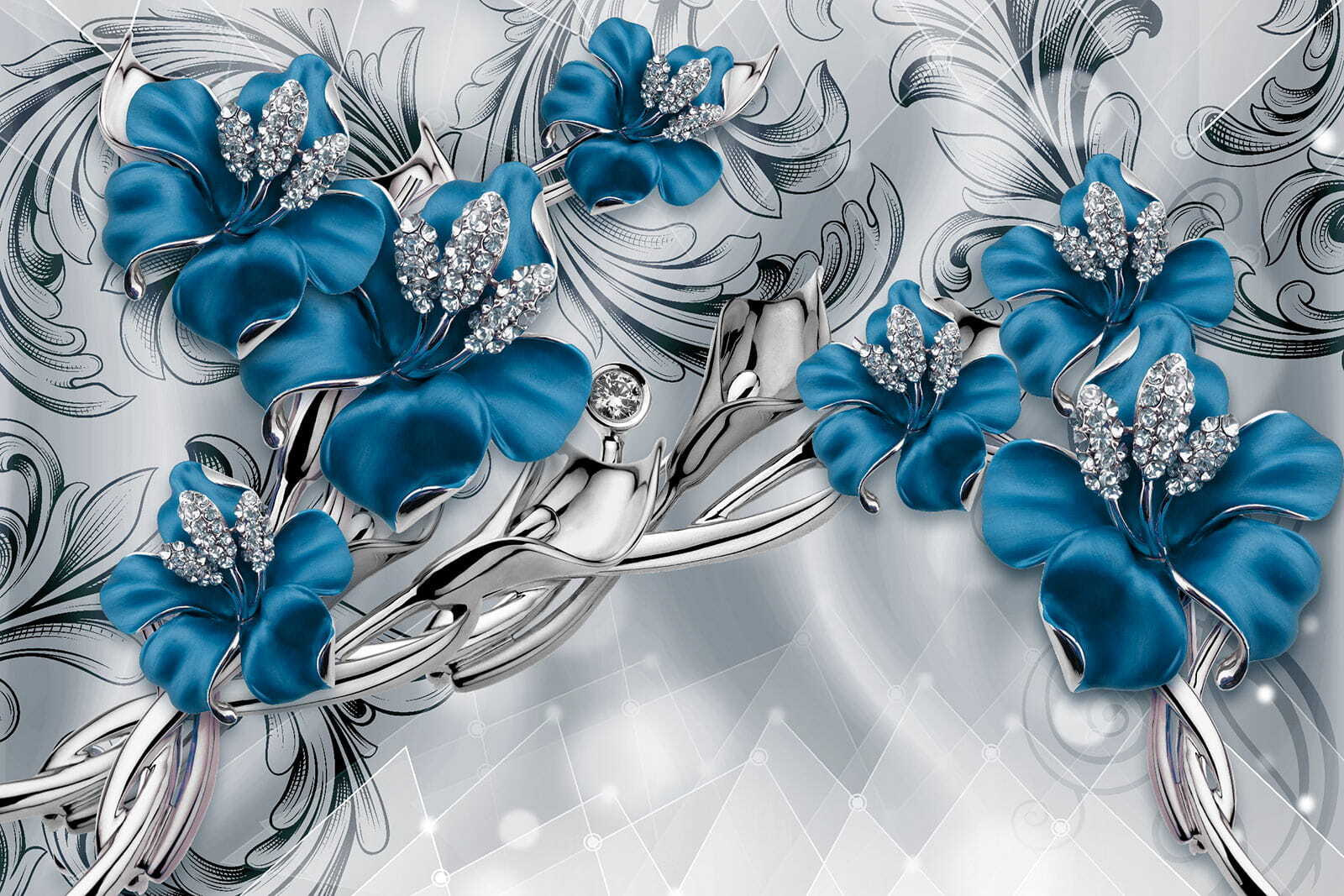 Fotótapéta Díszes kék virágok kristályokkal termékről 2 értékelés
