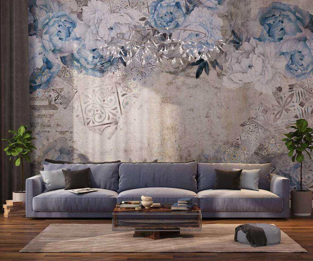 Fotótapéta Kék virágos minta vintage csempékkel Fotótapéta Kék virágos minta vintage csempékkel