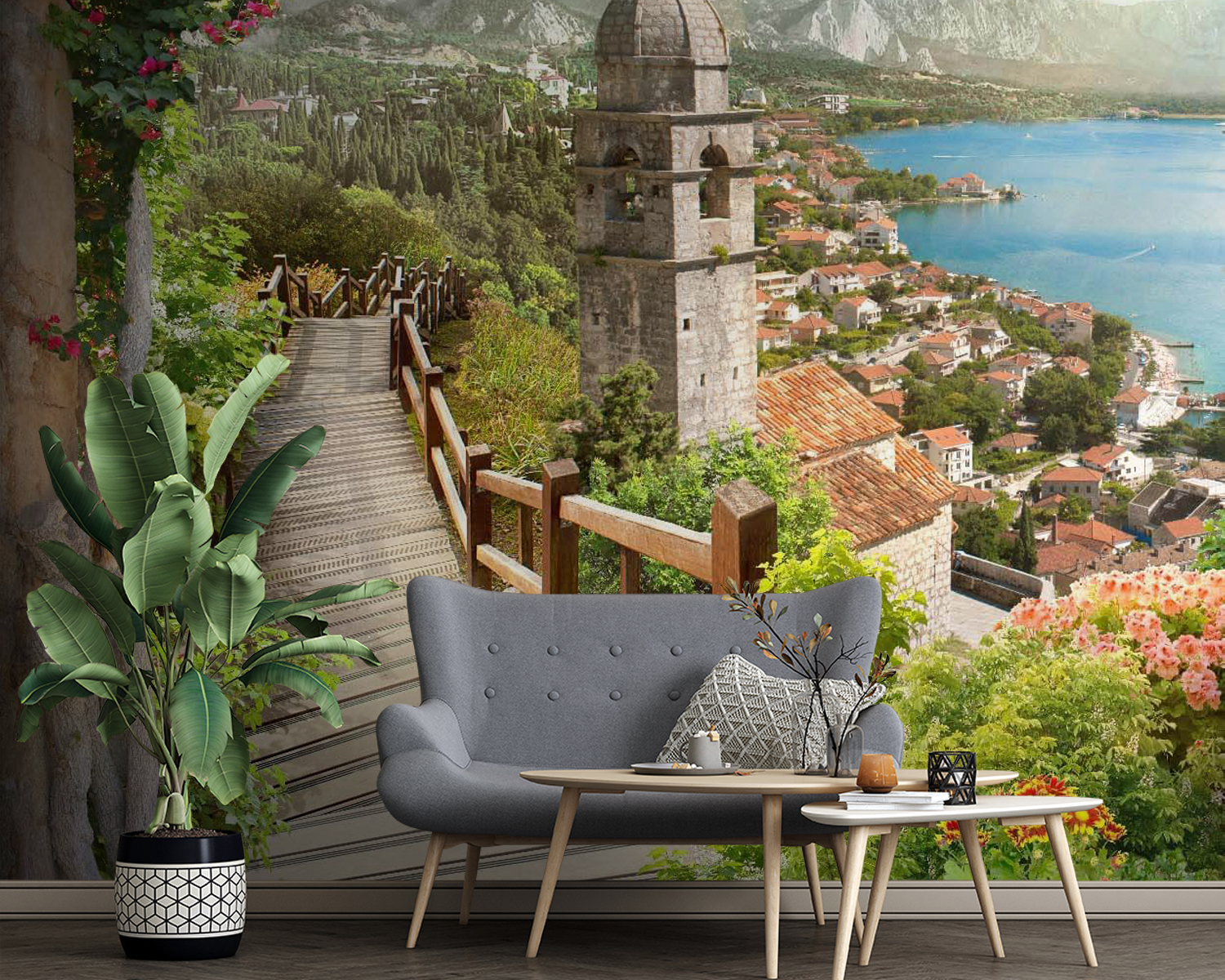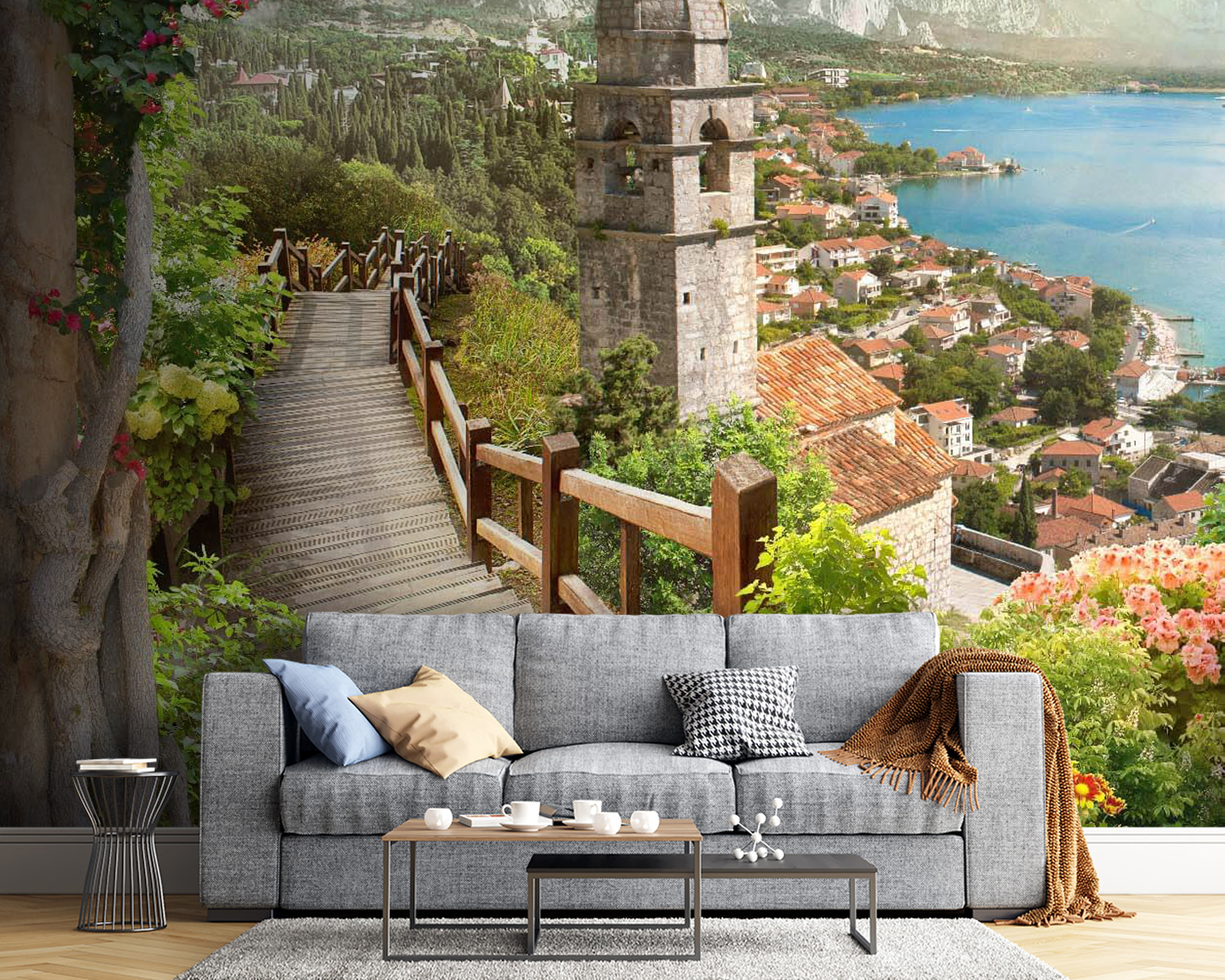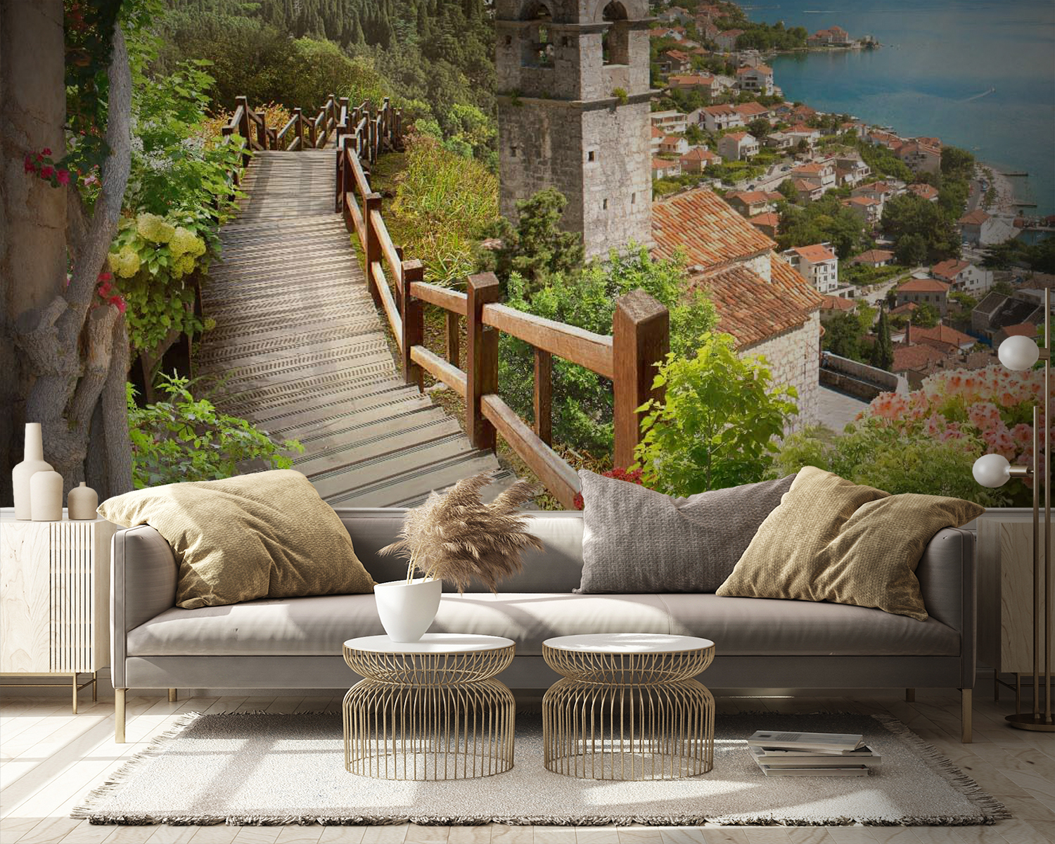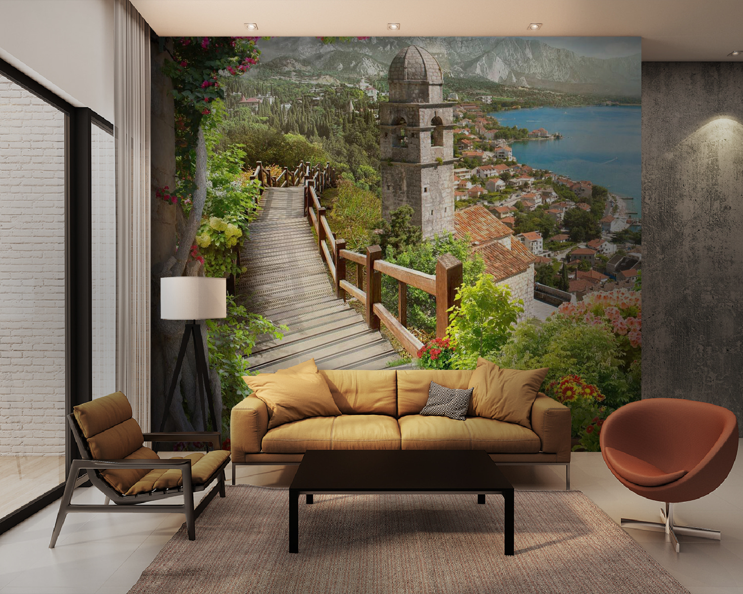Képzelje el, hogy minden alkalommal, amikor a falára pillant, egy álomszerű menekülésbe csöppen. Ez a „Stairway Leading to a Town” (Lépcső egy városba) című falfestmény napfényes sétákról mesél élénk kertekben, ahol a virágok csak arra várnak, hogy megcsodálják őket. A puha faút egy bájos falucskán vezet át, ahol a macskaköves utcák és a színes tetők finoman megragadják a képzeletét. Talán szinte hallani lehet a gyerekek nevetését vagy a partot ostromló hullámok távoli hangját. Ez egy kis darabka paradicsom az otthonában. Alakítsa át a terét ezzel a falfestménnyel, és hagyja, hogy elragadja, még ha csak egy pillanatra is – ez a tökéletes beszélgetésindító azoknak a lusta vasárnapoknak, amelyeket a barátaival tölt. Minden természetkedvelőnek és álmodozónak megfelelő, ez a mű melegséget és életet visz minden szobába.