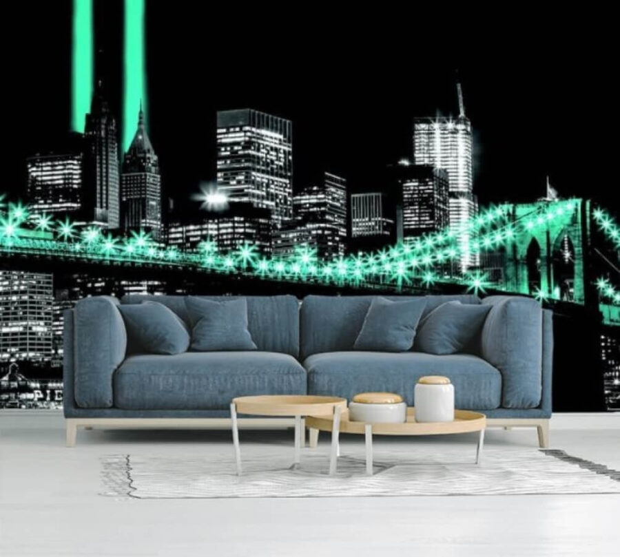Bármelyik falat lenyűgöző látványossággá varázsolhatja ezzel a lenyűgöző, fényekkel árasztott híddal díszített faliképpel, amely tökéletes azok számára, akik imádják a városi hangulatot. Képzelje el, hogy belép egy szobába, és ez a lenyűgöző látvány fogadja – mintha egy kis darabka városi varázslat lenne otthonában. A fekete és a zöld gazdag kontrasztjai hangulatos, mégis élénk légkört teremtenek, így tökéletes hátteret biztosítanak filmnéző estékhez vagy késő esti beszélgetésekhez. Ez a falfestmény olyan érzést kelthet Önben, mintha egy soha nem alvó város szívébe sétált volna be. Kinek kell utaznia, ha a fala elrepítheti?