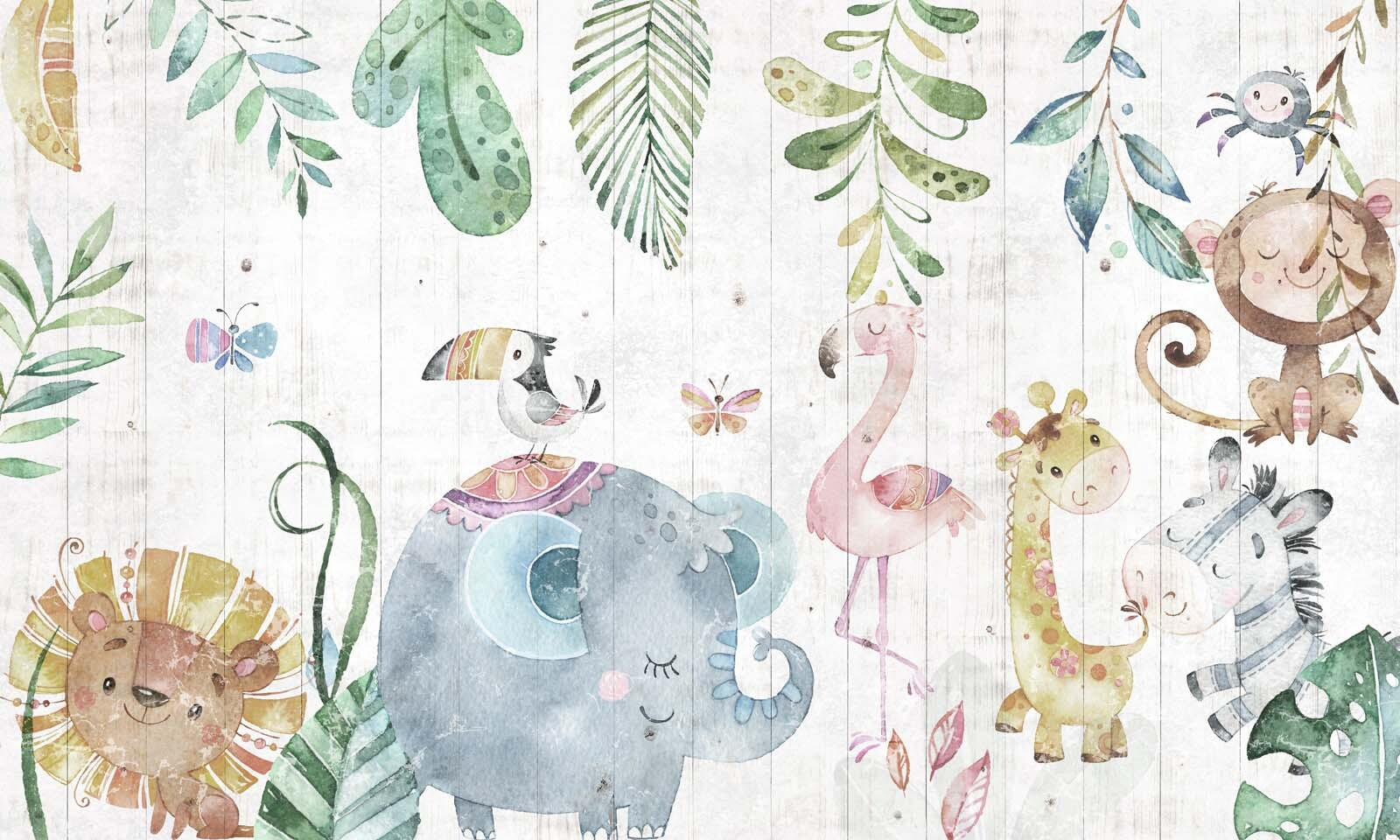 Bármilyen teret alakítson át játékos dzsungellé ezzel a bájos falfestménnyel, amely imádnivaló állatokat ábrázol lágy, akvarell stílusban. Képzeld el, hogy egy pajkos majom, egy szelíd elefánt és egy pózoló flamingó bájával nyüzsgő szobába lépsz be – olyan, mintha egy mini szafarin lennél otthon! Ez a falfestmény tökéletes a gyerekszobákba vagy játszóterekre, és azonnal örömet és egy csipetnyi szeszélyt hoz. Képzeld el, ahogy a kicsik kuncogva veszik észre kedvenc állataikat. A nyugtató színek kellemesek a szemnek, és nyugodt hátteret teremtenek a képzeletbeli és valós kalandokhoz. Ez több mint dekoráció; ez egy boldog hely az álmodozáshoz!